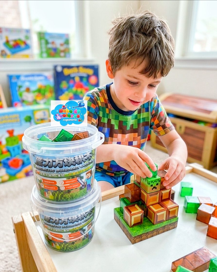 Bloques magnéticos de construcción inspirados en el estilo visual de Minecraft.