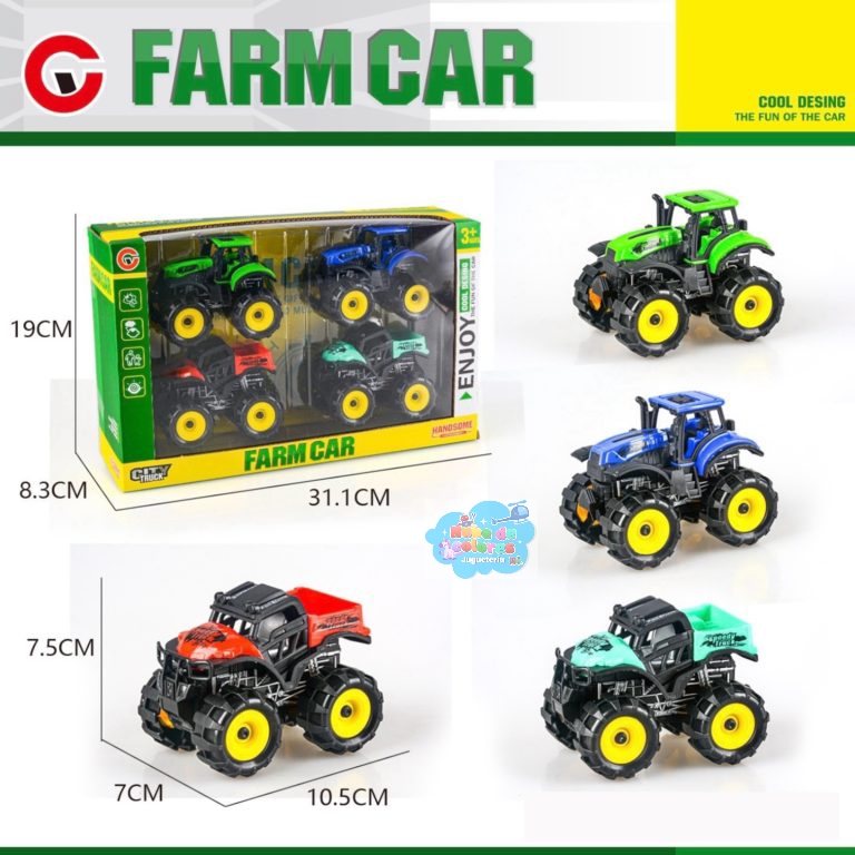 4 Tractores de juguete «FARM CAR» que funcionan con un mecanismo de fricción.