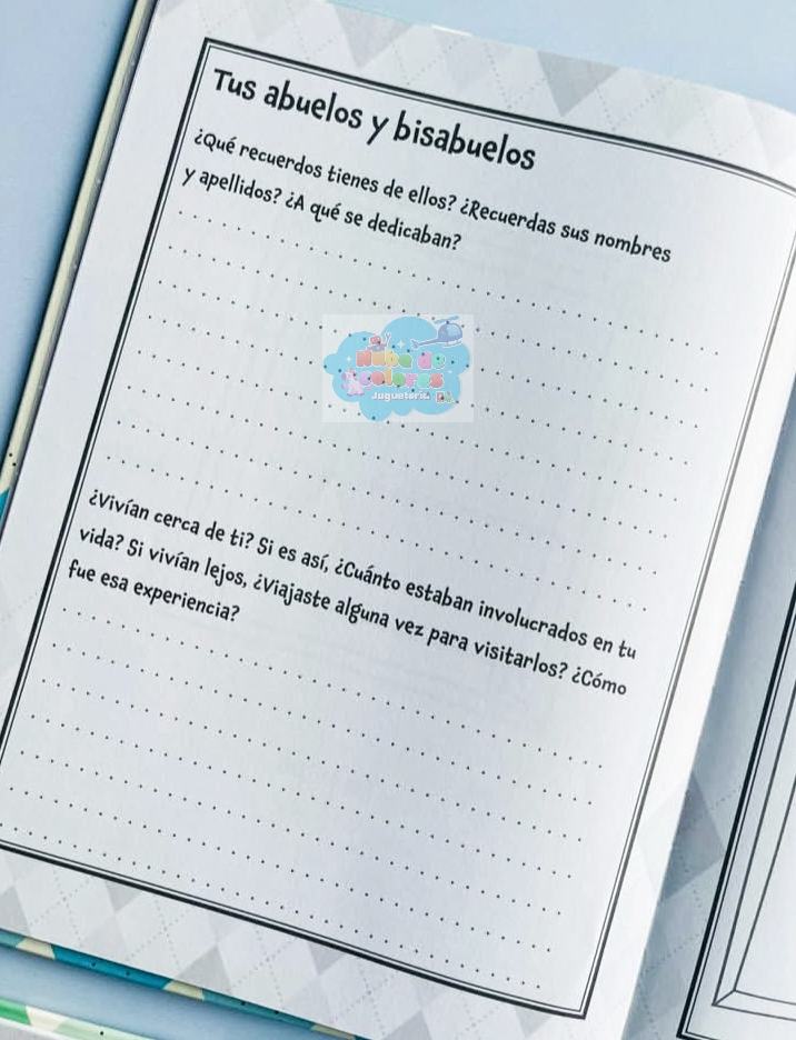 Abuela, cuéntame tu historia, es un diario de 96 páginas con más de 150 preguntas guiadas que tiene un objetivo muy claro: recopilar datos y recuerdos de nuestro abuelo para que su historia, su vida y sus recuerdos no queden en el olvido de las generaciones futuras.