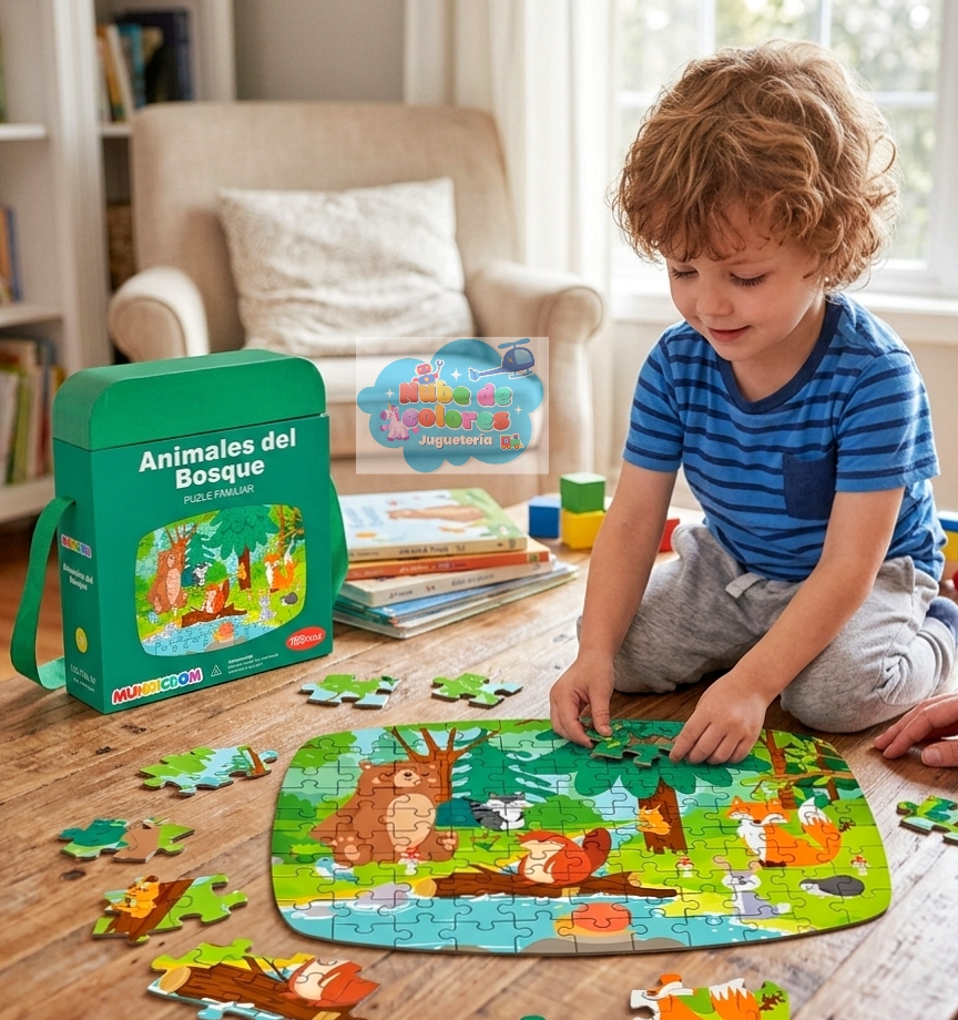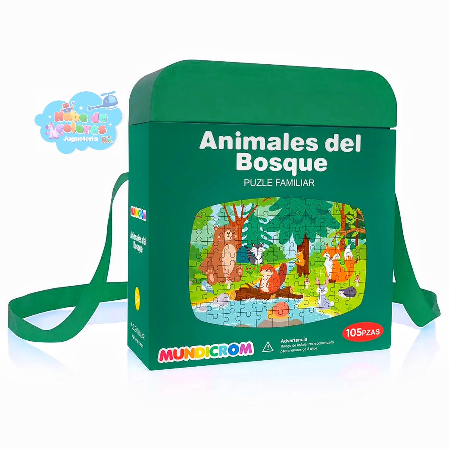 Puzle familiar de la marca Mundicrom, específicamente el modelo «Animales del Bosque» que contiene 105 piezas.