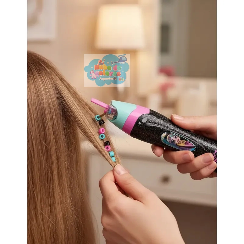 Se trata de un juguete diseñado para decorar el cabello de niñas y niños o de sus muñecas, permitiendo colocar cuentas o mostacillas de forma rápida y sencilla.