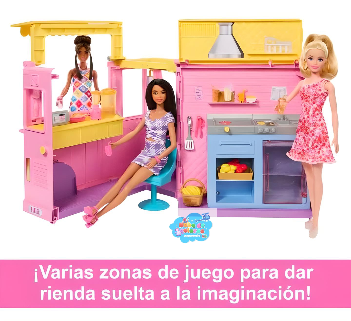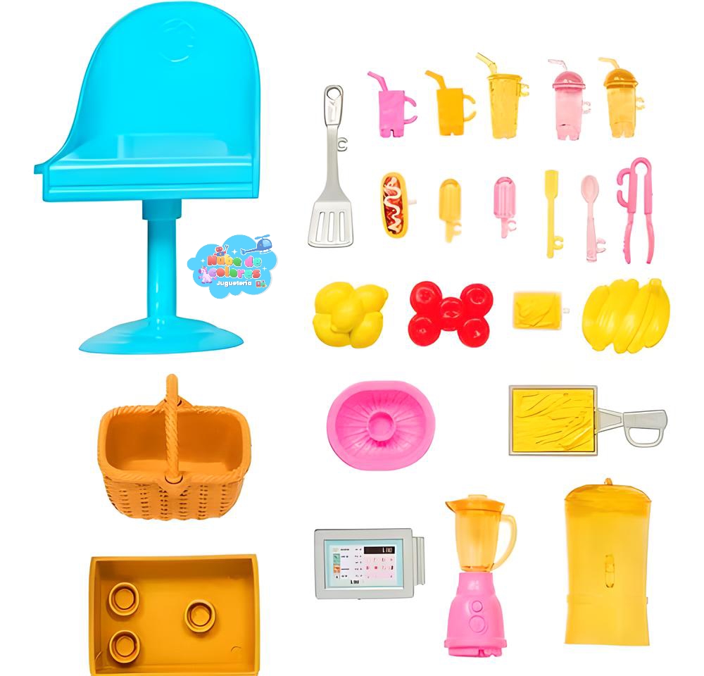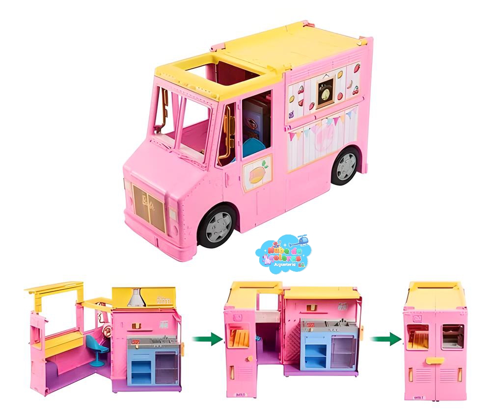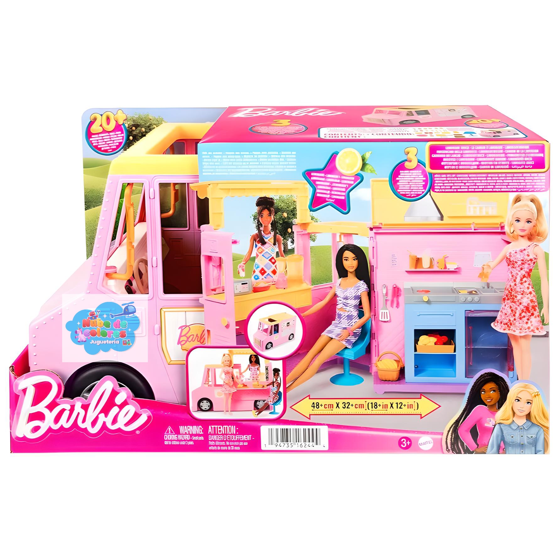 El tráiler de Barbie Lemonade viene con accesorios que hacen que el juego sea aún más realista y divertido. Con él, los niños pueden simular un verdadero día de venta de limonada, estimulando el aprendizaje y el desarrollo de habilidades sociales.