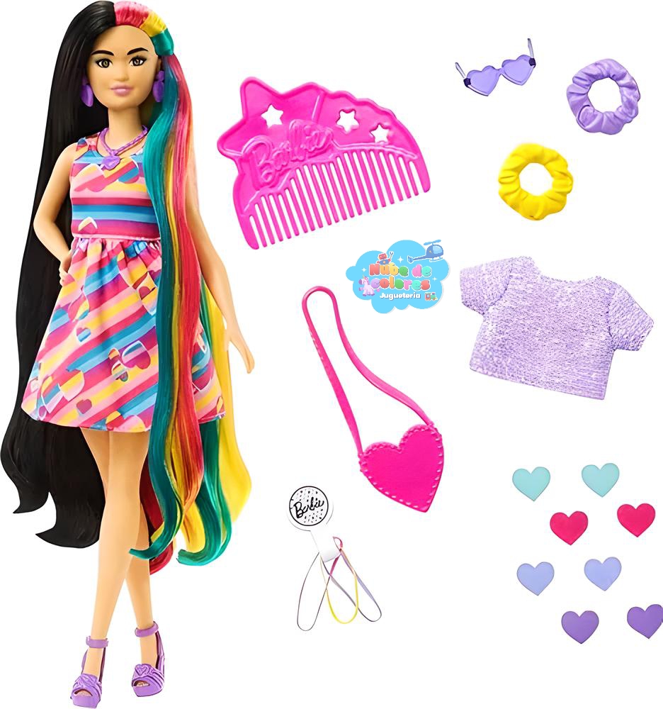 La muñeca Barbie Totally Hair con temática de corazón luce su propio peinado, textura de cabello y aspecto de moda y está inspirada en la muñeca más vendida que debutó por primera vez hace 30 años.