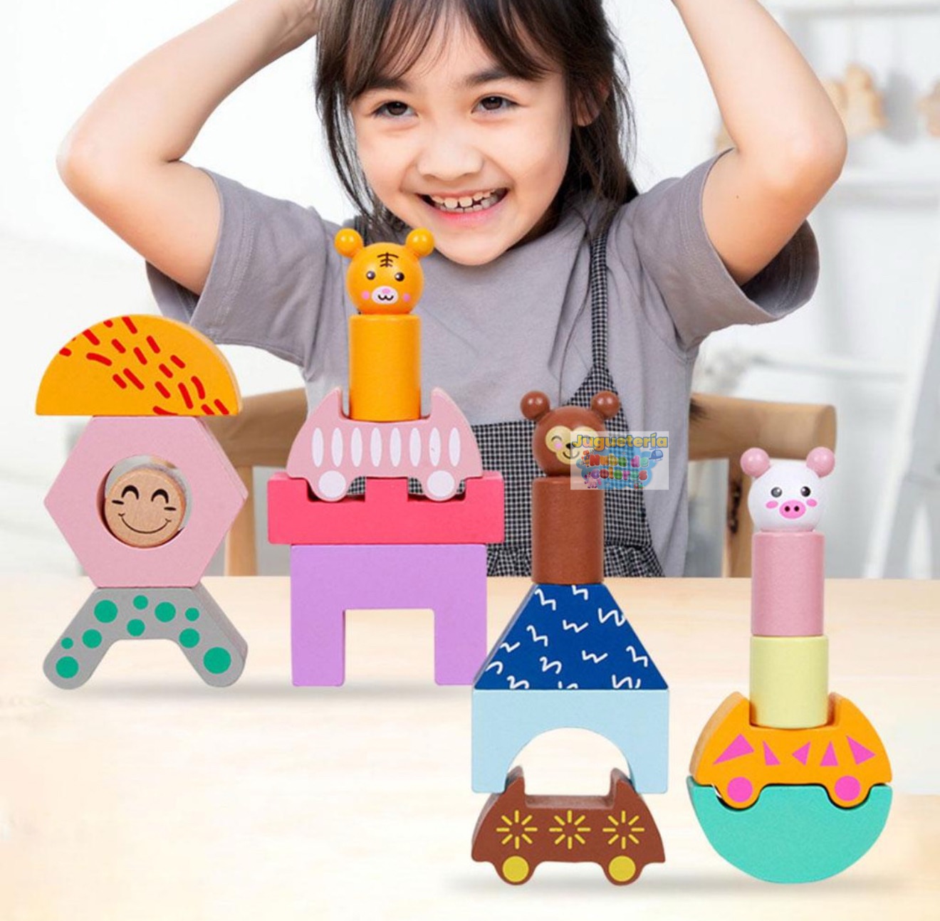 Set de Bloques Apilables con Animales 🐻🐰🦊, un juguete de construcción perfecto para que los niños desarrollen habilidades mientras se divierten creando figuras.