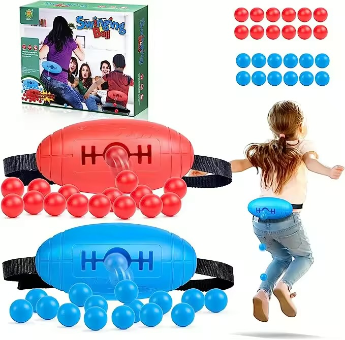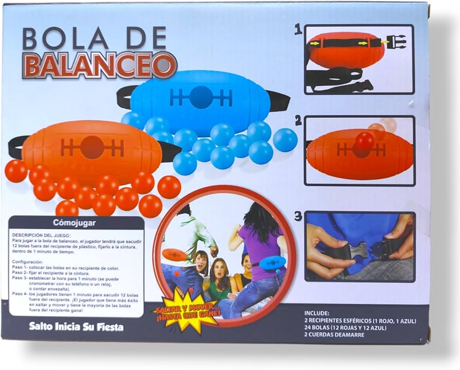 El objetivo es sacar todas las pelotas del contenedor en 1 minuto. Fija el contenedor en tu cintura y sin usar tus manos, salta, muévete, baila hasta que no quede ninguna dentro! Quien logres sacar más pelotas será el ganador.