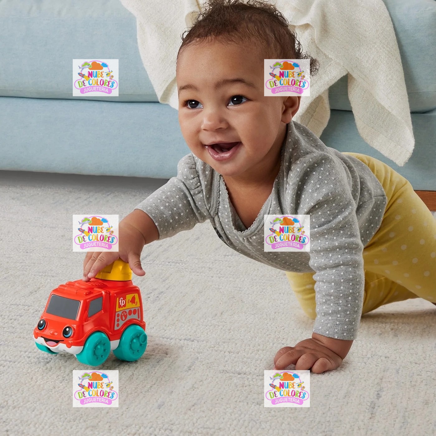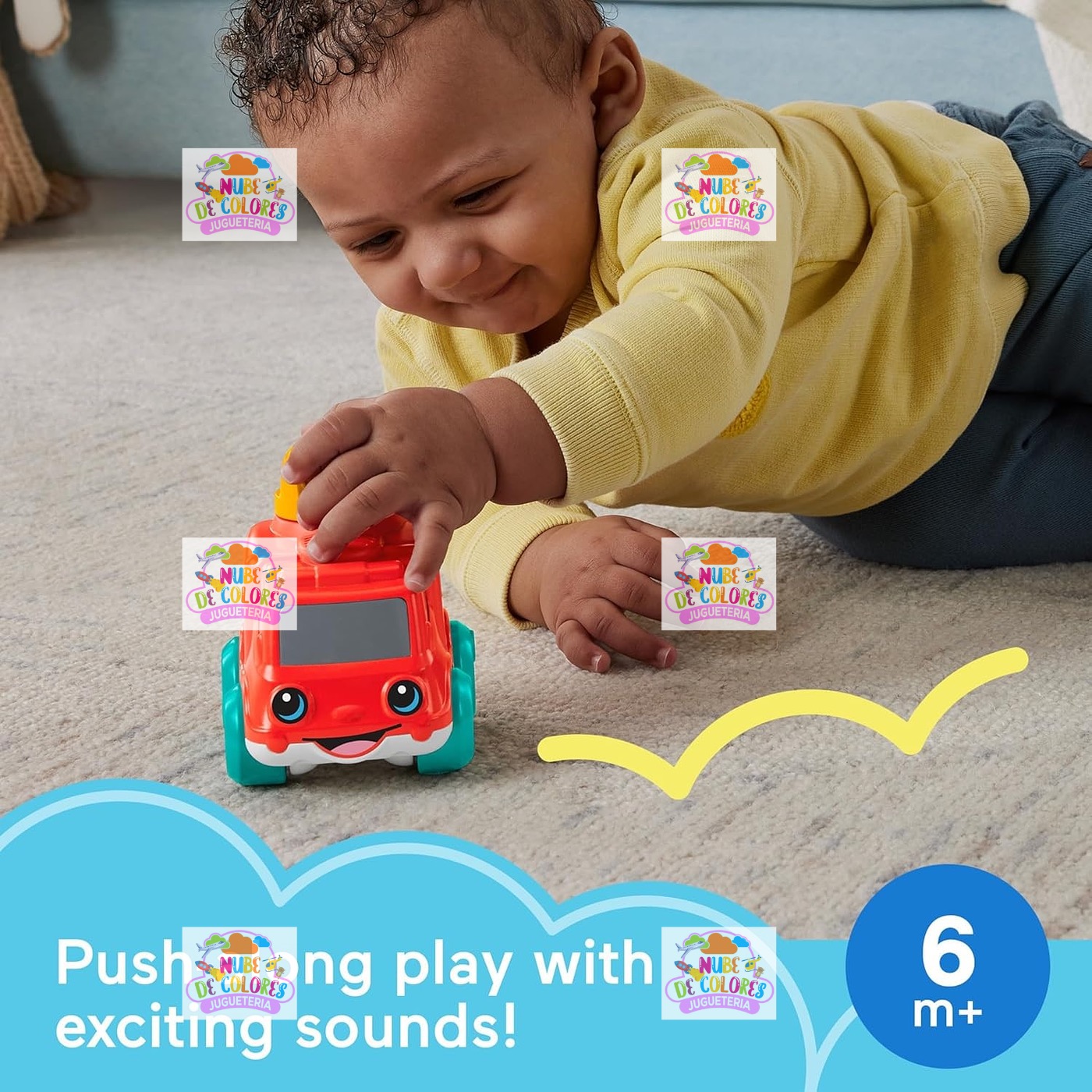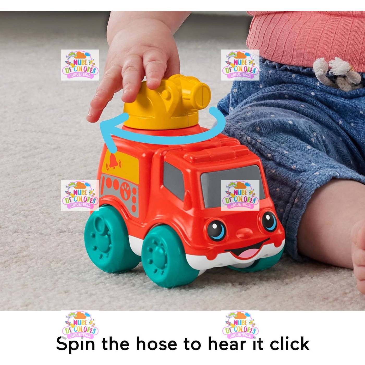 Tu pequeño se divertirá muchísimo con el camión de bomberos de juguete para bebés Chime & Ride de Fisher-Price®. Este adorable vehículo para empujar tiene colores brillantes, una cara simpática y una manguera contra incendios fácil de agarrar que gira 360 grados y hace un ruido de clic. Y cuando el bebé empuja y tira del camión de bomberos, será recompensado con un sonido de timbre. Toda esta actividad anima a los bebés a gatear junto con el camión de bomberos, lo que ayuda a desarrollar esas habilidades motoras finas y gruesas tan importantes.