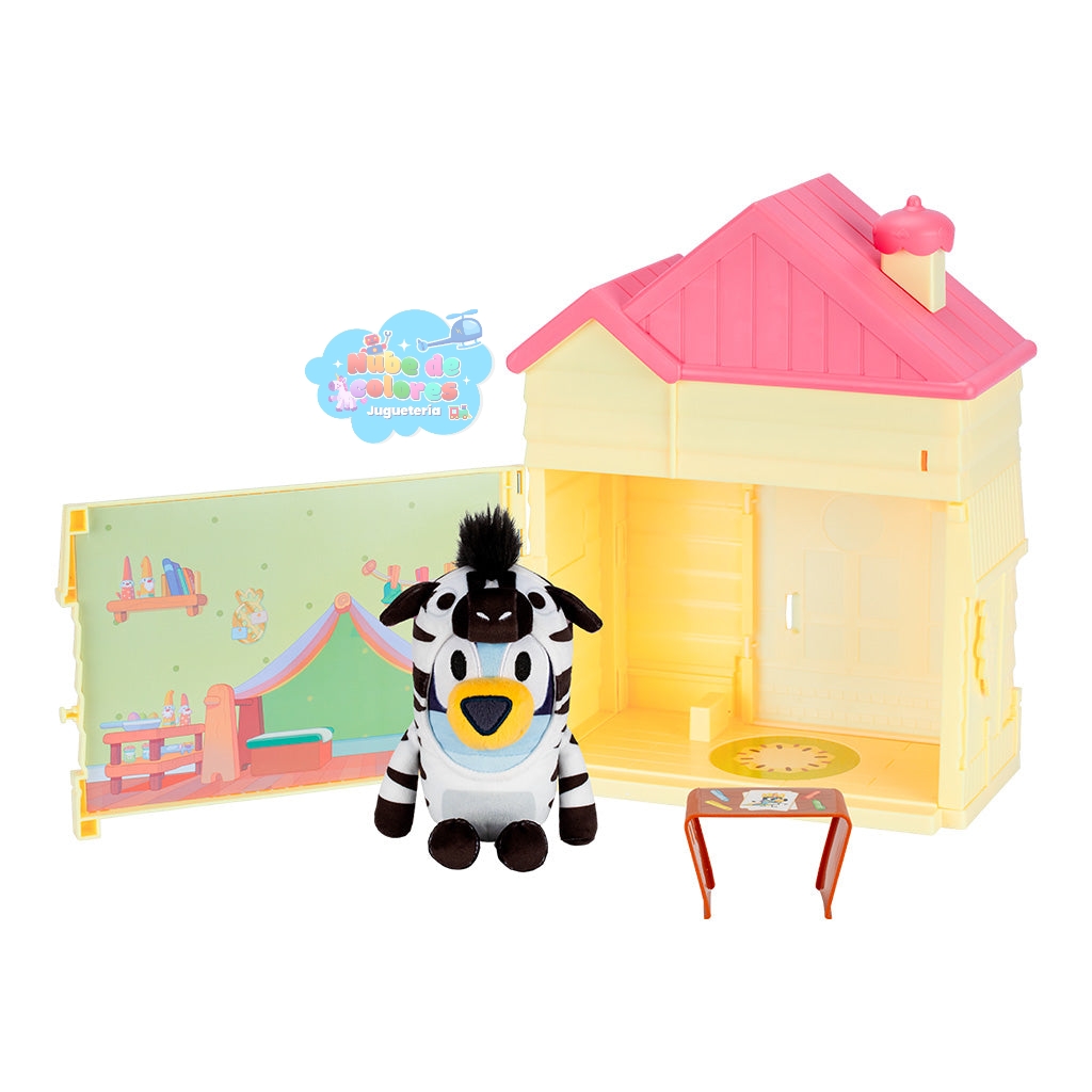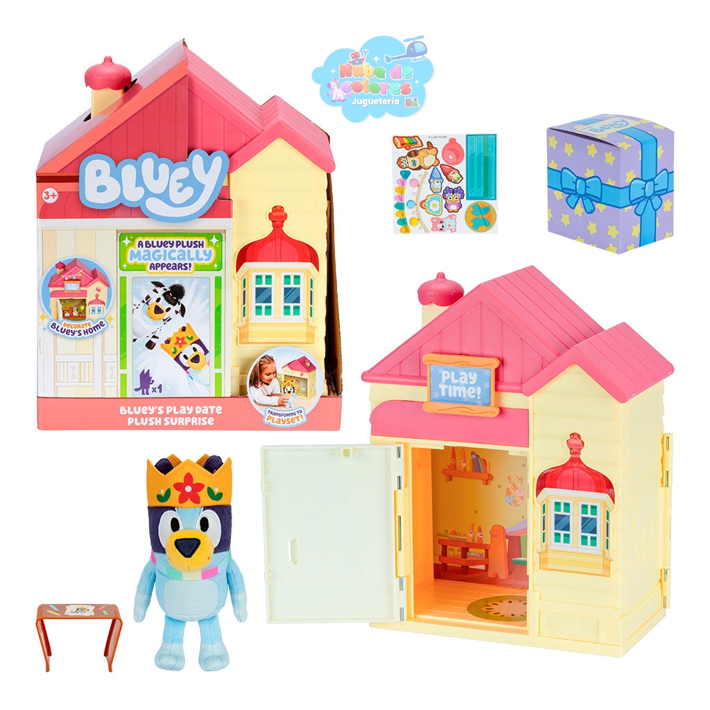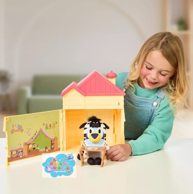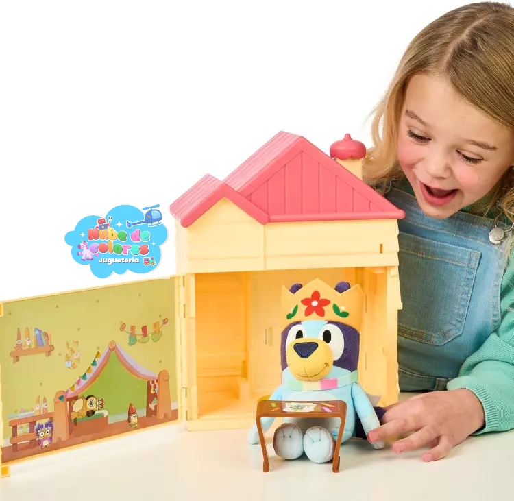 - ¿Qué es? Es un set de juego interactivo inspirado en la serie de televisión infantil «Bluey». La casa se puede decorar y esconde una sorpresa en su interior.