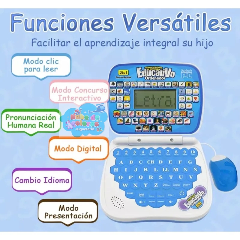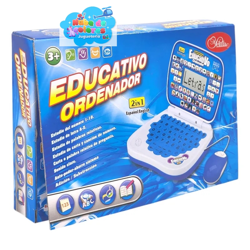 Juguete interactivo llamado «Ordenador Educativo» de la marca Velula, diseñado para el aprendizaje de niños a partir de 3 años.