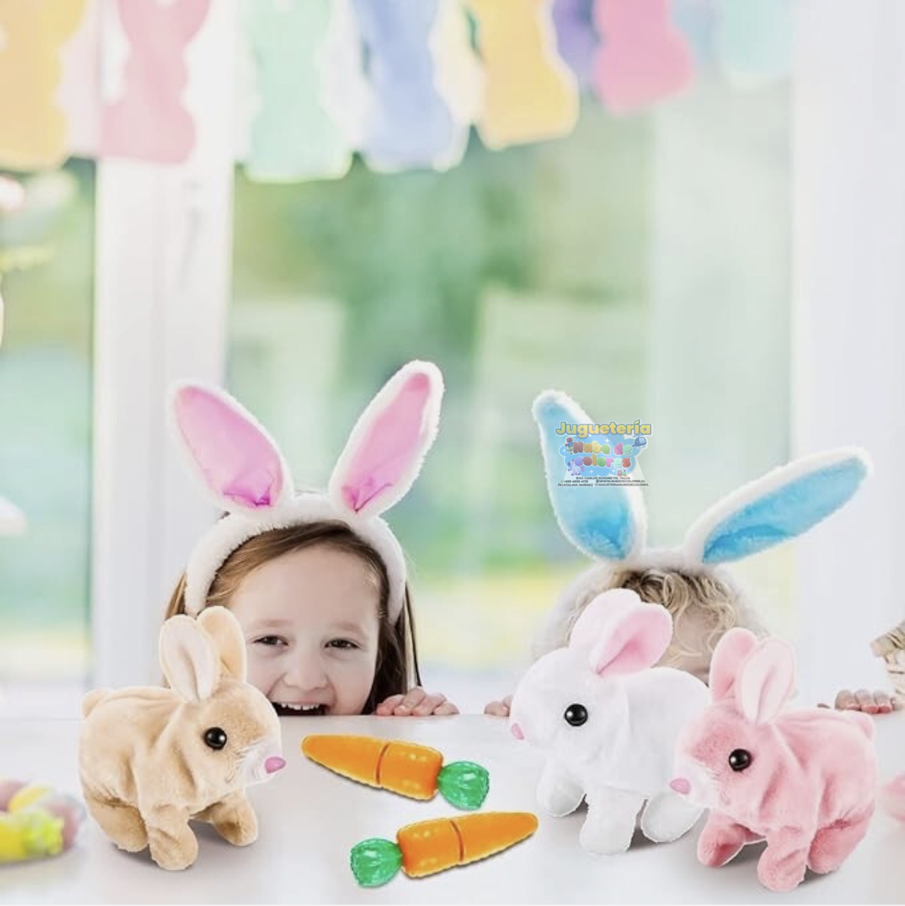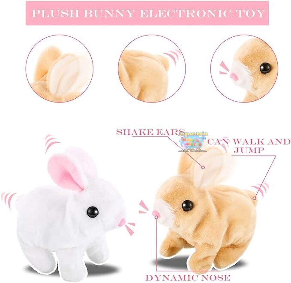 Mueve sus orejitas, camina y salta mientras mueve su pequeña nariz, haciendo que los niños se enamoren de él al instante.