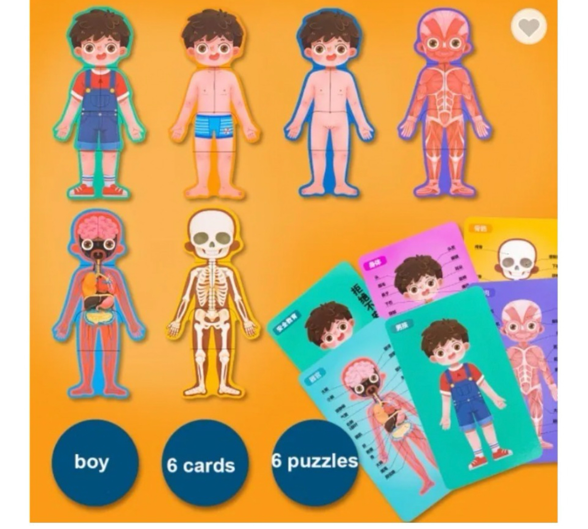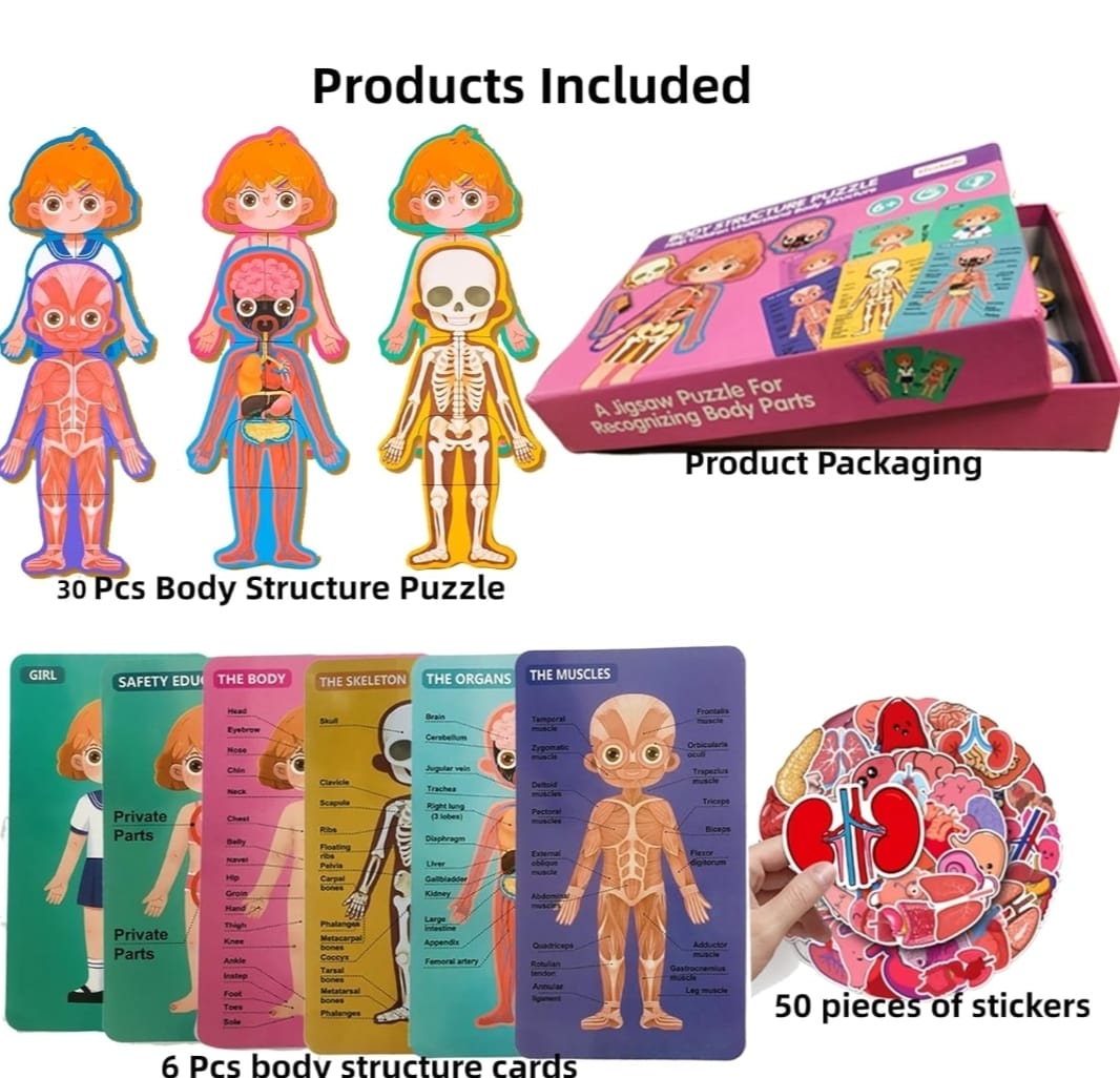 Juguete de aprendizaje Montessori rompecabezas de cuerpo humano, diviértete mientras aprendes. Nuestro rompecabezas de cuerpo humano Montessori es el regalo perfecto para niños que quieren aprender sobre el cuerpo humano de una manera interactiva y divertida. Este rompecabezas interactivo 3D es una herramienta educativa efectiva que ayuda a los niños a comprender la estructura y función del cuerpo humano. Este juguete de aprendizaje fomenta el pensamiento crítico, la resolución de problemas y el aprendizaje activo. Beneficios: -Fomenta el aprendizaje interactivo y divertido sobre el cuerpo humano. -Ayuda a los niños a comprender la estructura y función del cuerpo humano. -Promueve el pensamiento crítico y las habilidades de resolución de problemas. -Ofrece una herramienta educativa eficaz para el aprendizaje activo. – Fabricado con materiales seguros y de alta calidad para niños.