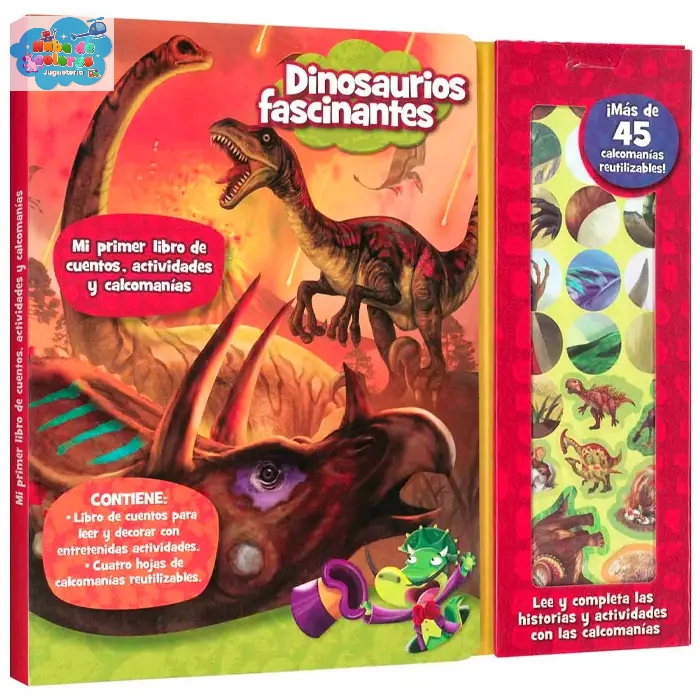 Dinosaurios Fascinantes es un libro para que los pequeños lean y completen las historias y actividades con más de 45 calcomanías.