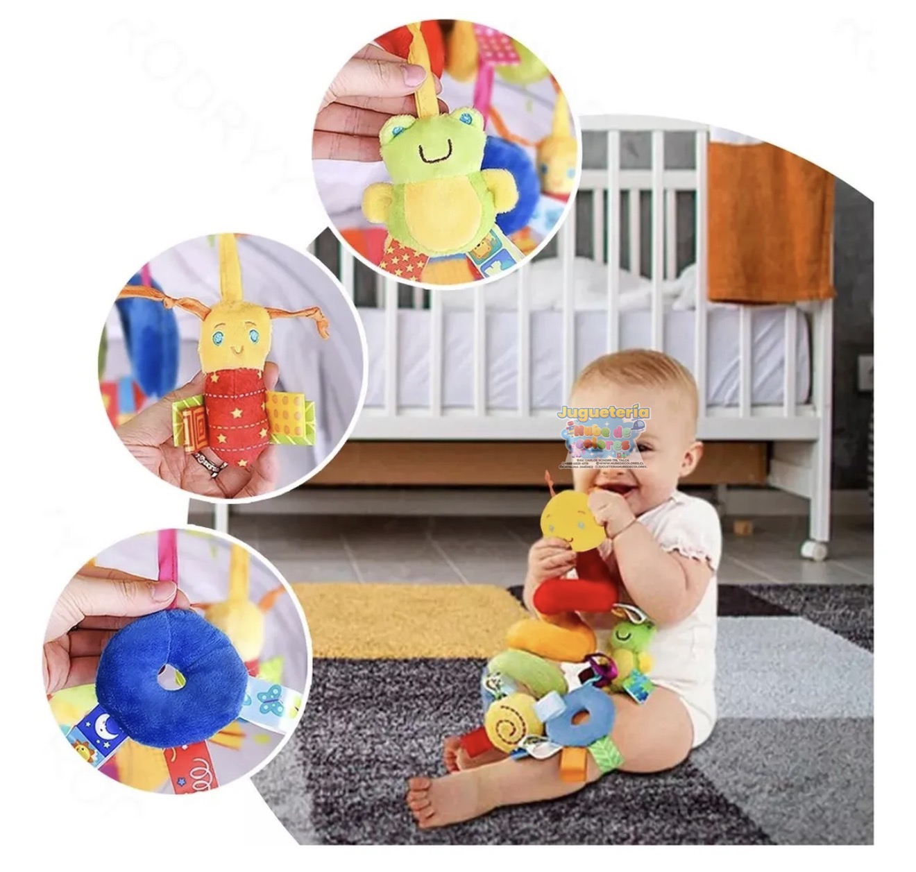 Los pequeños juguetes colgantes invitan al bebé a tocar, agarrar y descubrir, estimulando su curiosidad natural.