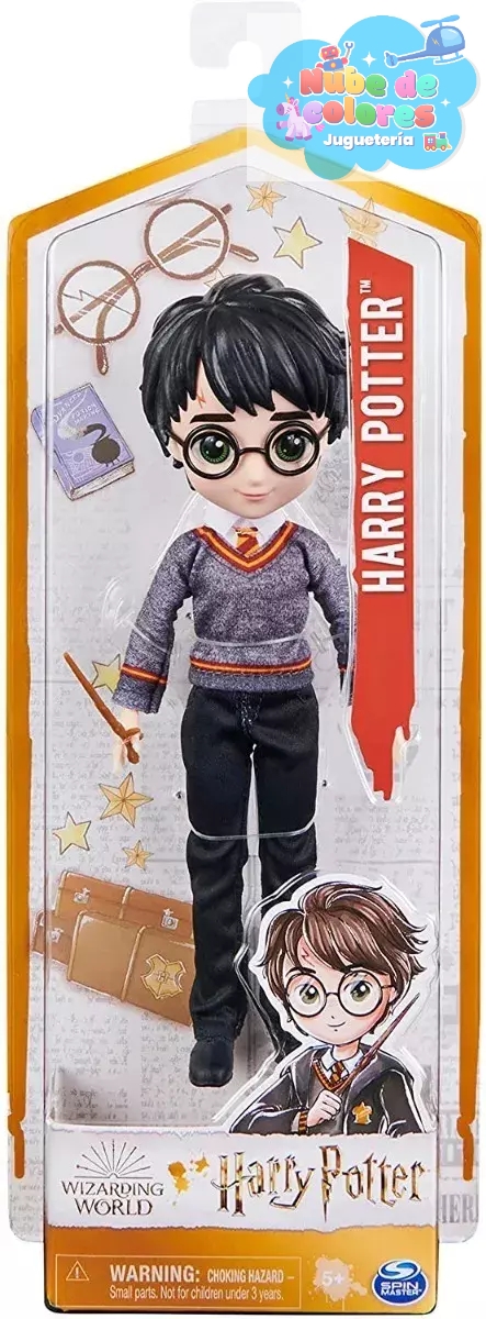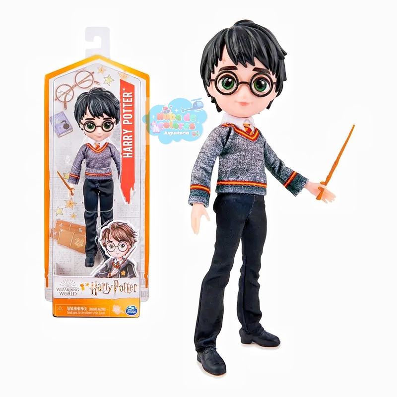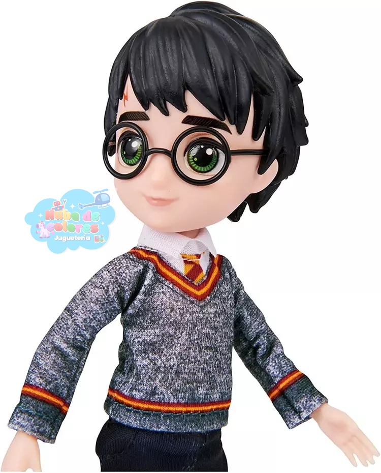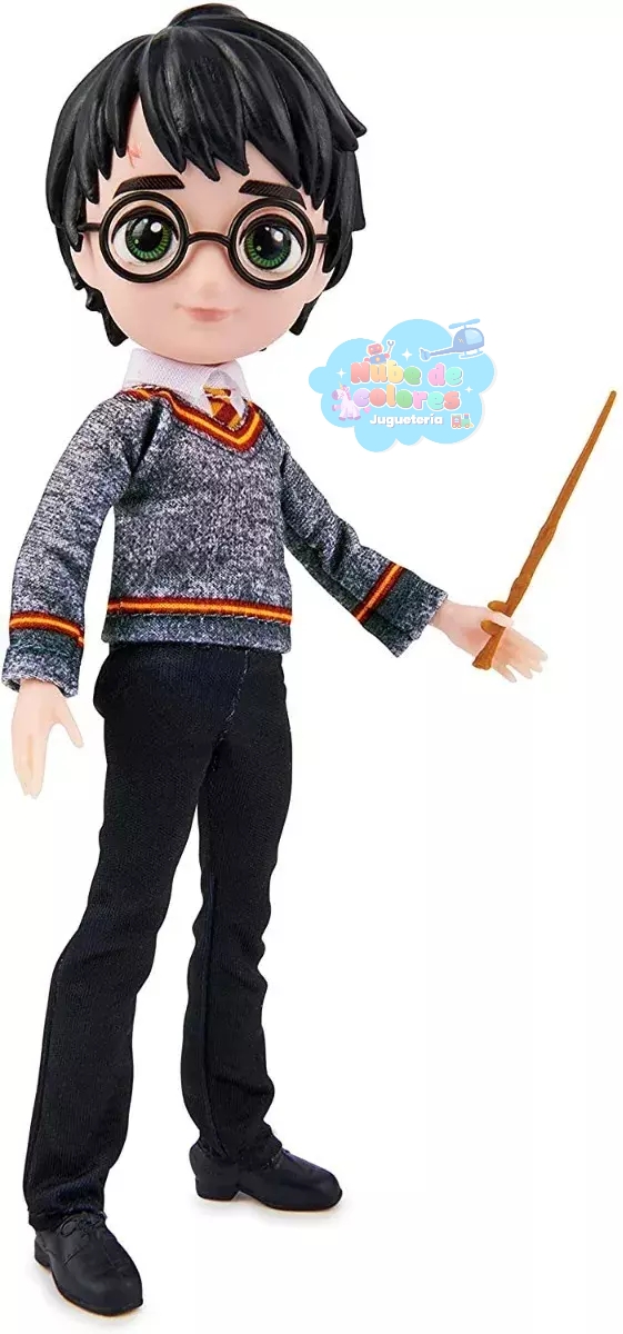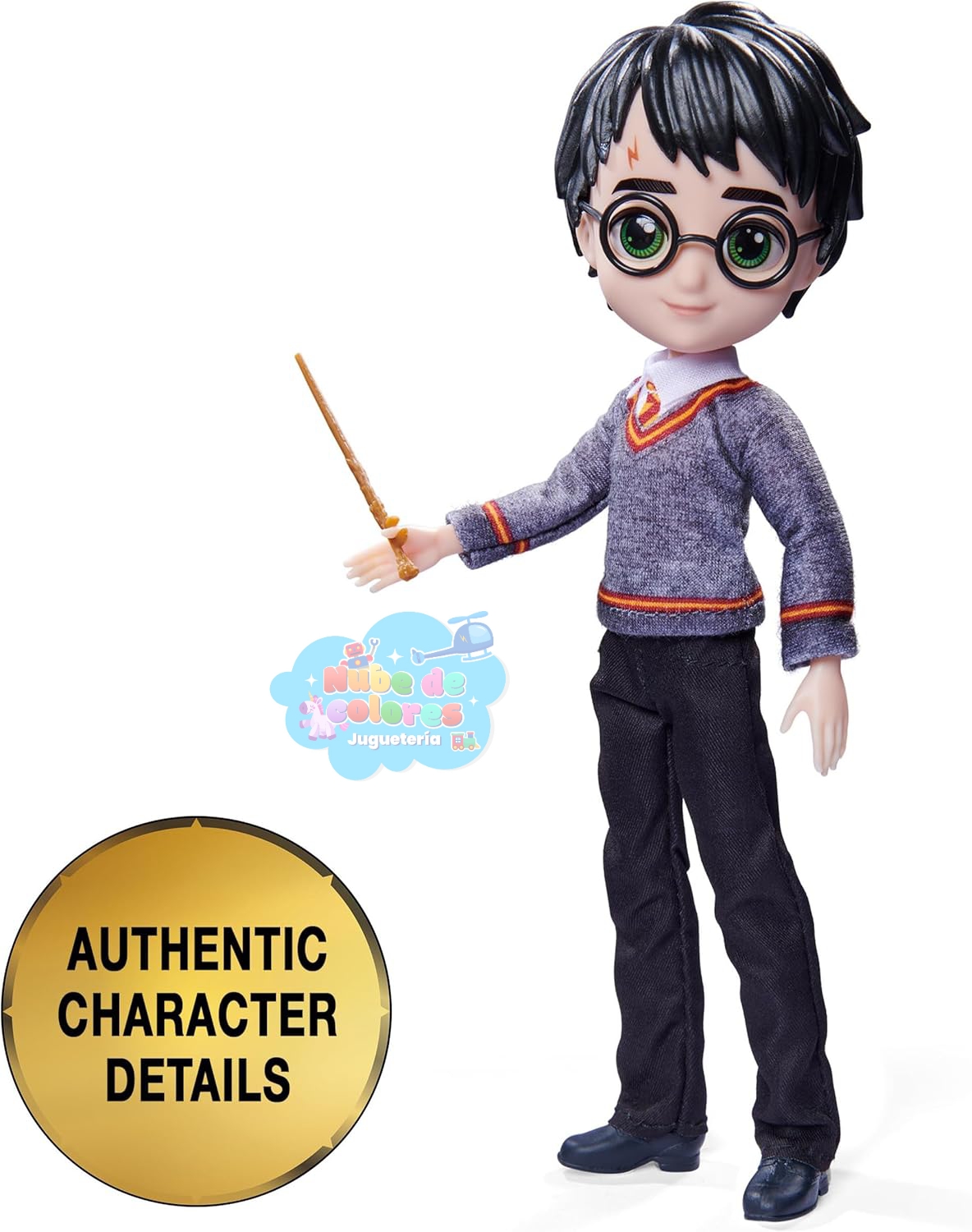 Muñeco de acción o figura coleccionable de aproximadamente 20 cm (8 pulgadas) de la marca Spin Master. Cuenta con detalles faciales auténticos, ropa de tela (como el suéter de Gryffindor) y puntos de articulación para posar la figura.
