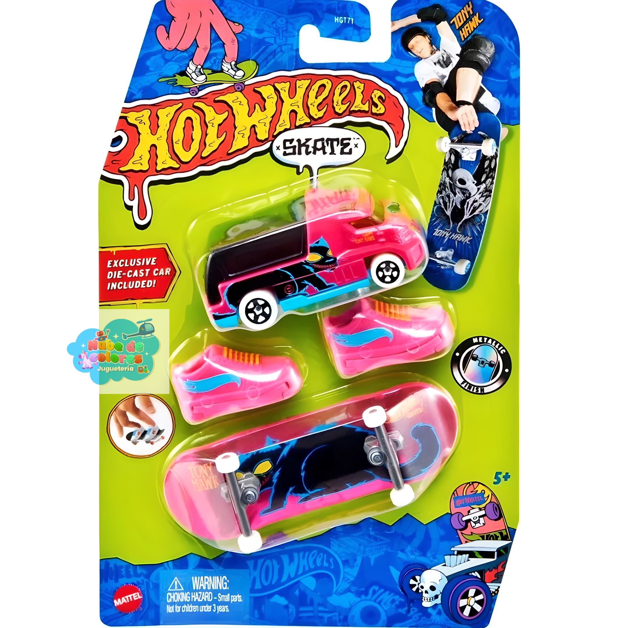 Hot Wheels Skate combina patinetas para dedos premium, zapatillas con estilo y vehículos exclusivos de Hot Wheels.