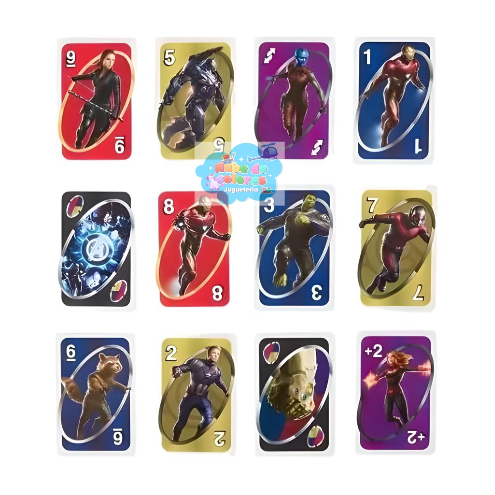 Versión del clásico juego de cartas UNO con temática de los Vengadores de Marvel.