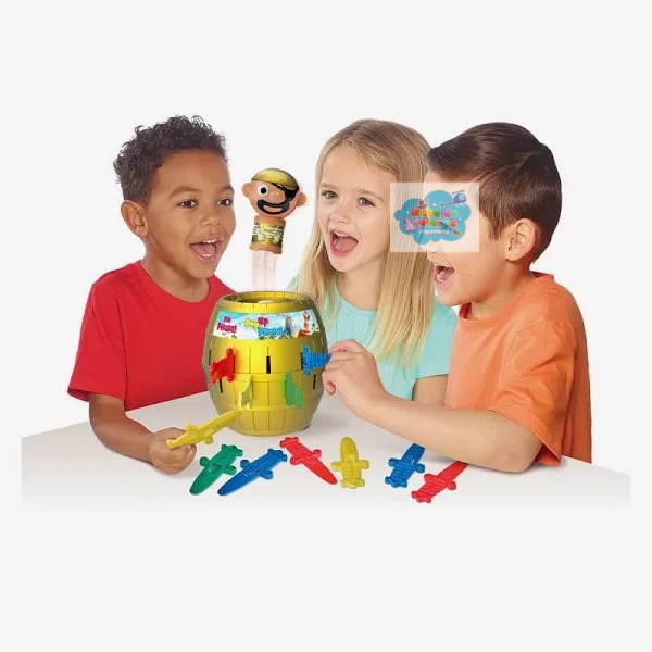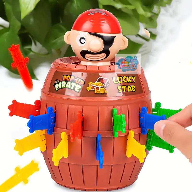 El juego incluye un barril, un pirata y 24 espadas de colores. Para jugar, los jugadores se turnan para insertar espadas en el barril. Si el pirata sale volando, el jugador que insertó la espada queda fuera del juego. El último jugador que quede en el juego gana.