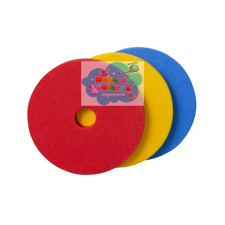 Se trata de un juego de lanzamiento de anillos que incluye tres amigos animales que lanzan agua y se sientan encima de flotadores de espuma.