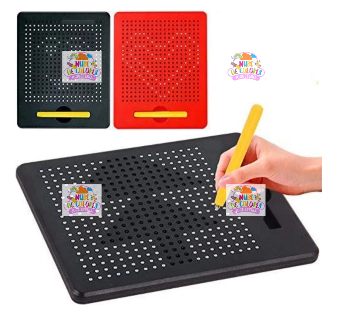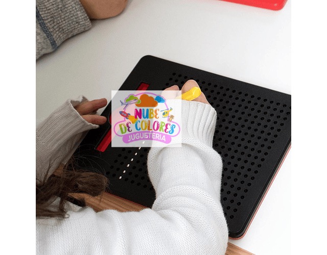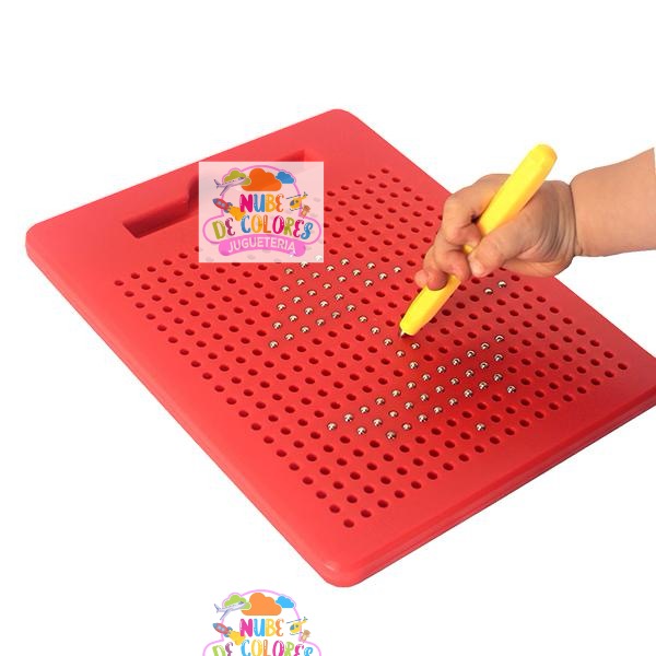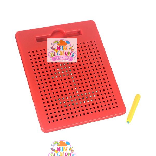 Sólo basta deslizar el lápiz imantado sobre el tablero y las pelotitas metálicas irán apareciendo en la superficie, dando vida a tus creaciones en 2D. Luego, para borrar fácilmente, pon en posición horizontal el lápiz imantado sobre la superficie y deslízalo, o presiona las pelotitas con el dedo.