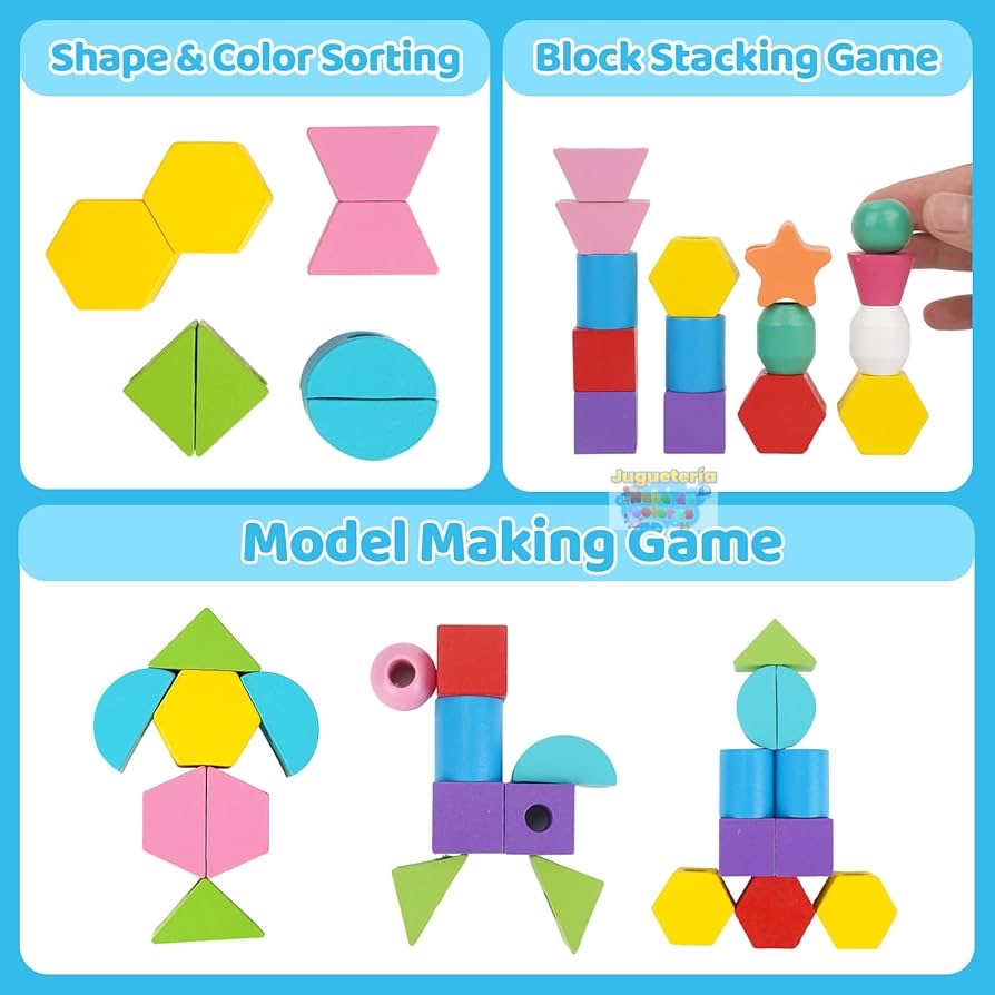 • Coordinación ojo-mano: Al insertar las figuras en el cordón o en los postes, se trabaja la conexión visual-motora.