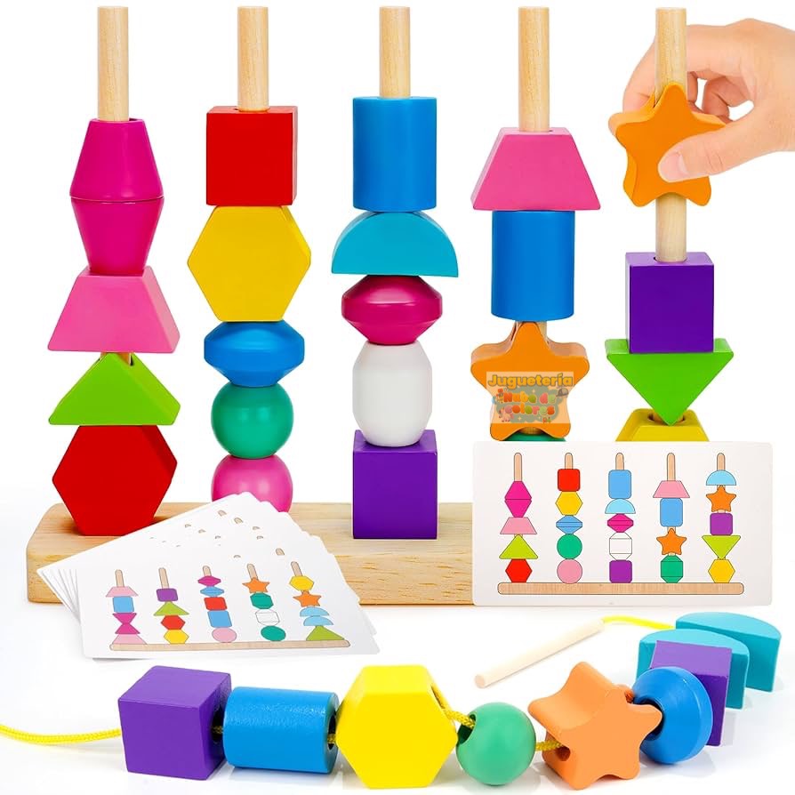 • Clasificación y seriación: Al apilar o enhebrar en orden, los niños practican conceptos matemáticos básicos.