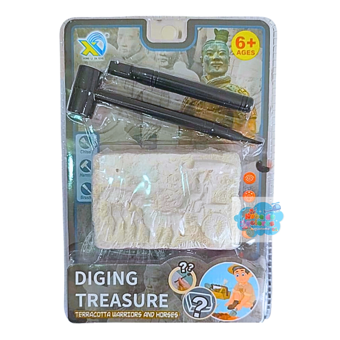 Excava la piedra de arcilla de 10 cm x 4 cm x 6 cm con un cincel y un martillo. Aprende sobre los guerreros y caballos de terracota mientras excavas tus propios tesoros.¡Divertido y educativo!