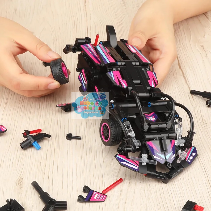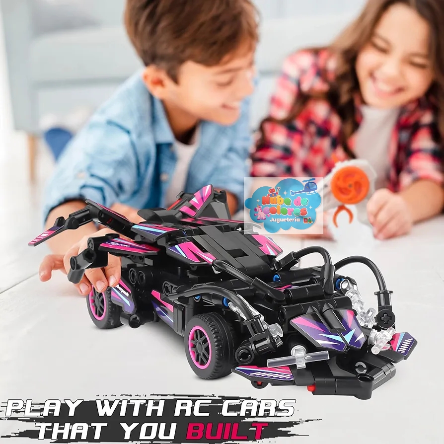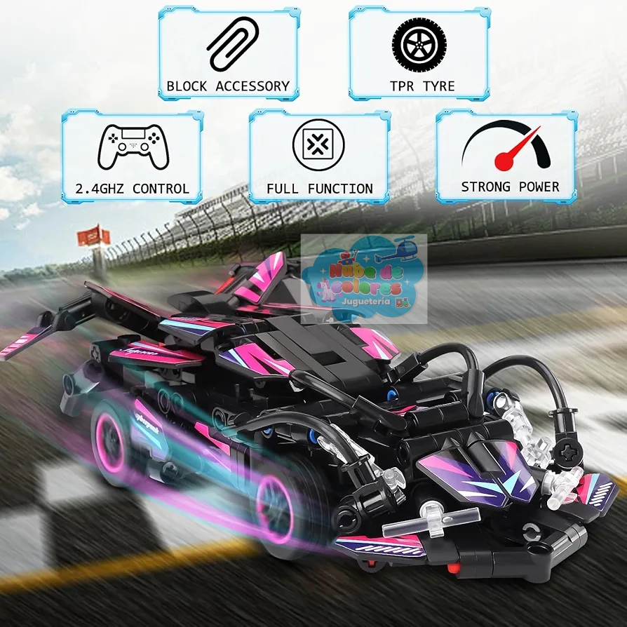 Es un coche teledirigido (RC) para construir con bloques.