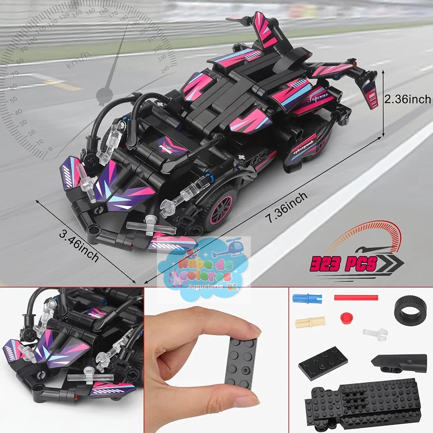 Contiene 323 piezas, lo que permite el montaje de un vehículo.