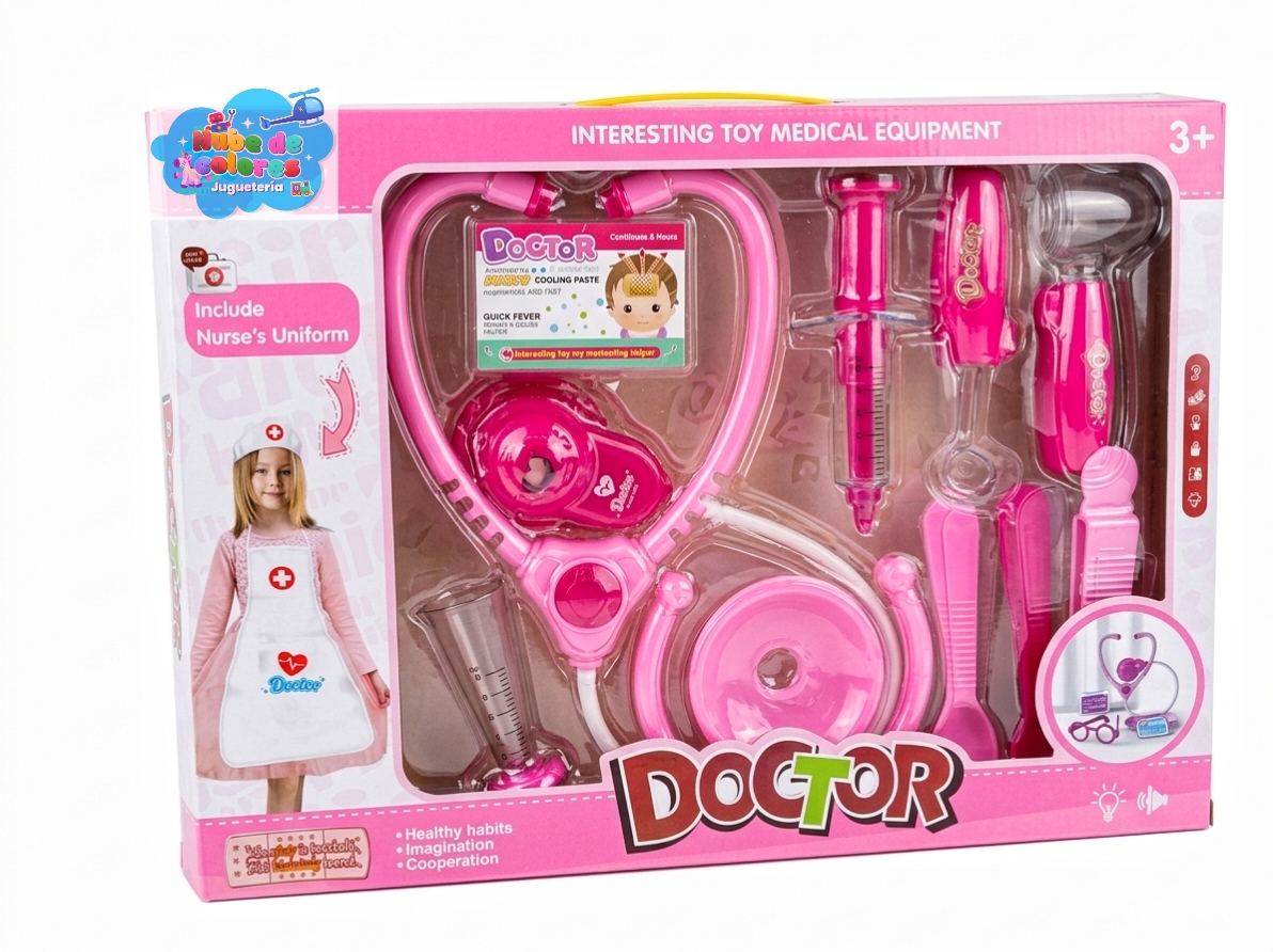 Set de doctor de juguete, diseñado para que niños y niñas (a partir de los 3 años) jueguen a ser profesionales de la salud.