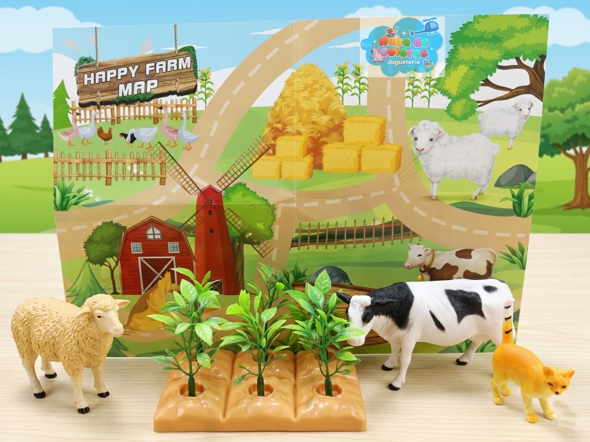 • Mapa de juego: Un tapete o fondo con ilustraciones de una granja («Happy Farm Map»).
