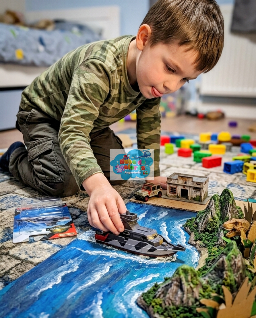 - Juego imaginativo: Está diseñado para que niños (generalmente de 3 años en adelante) recreen escenas de acción y aventuras inspiradas en la franquicia de Jurassic World.