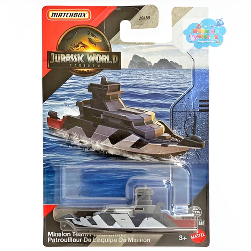 Es una lancha de patrullaje a escala 1:64 fabricada con materiales de metal y plástico. Forma parte de una colección temática inspirada en la película Jurassic World Rebirth.