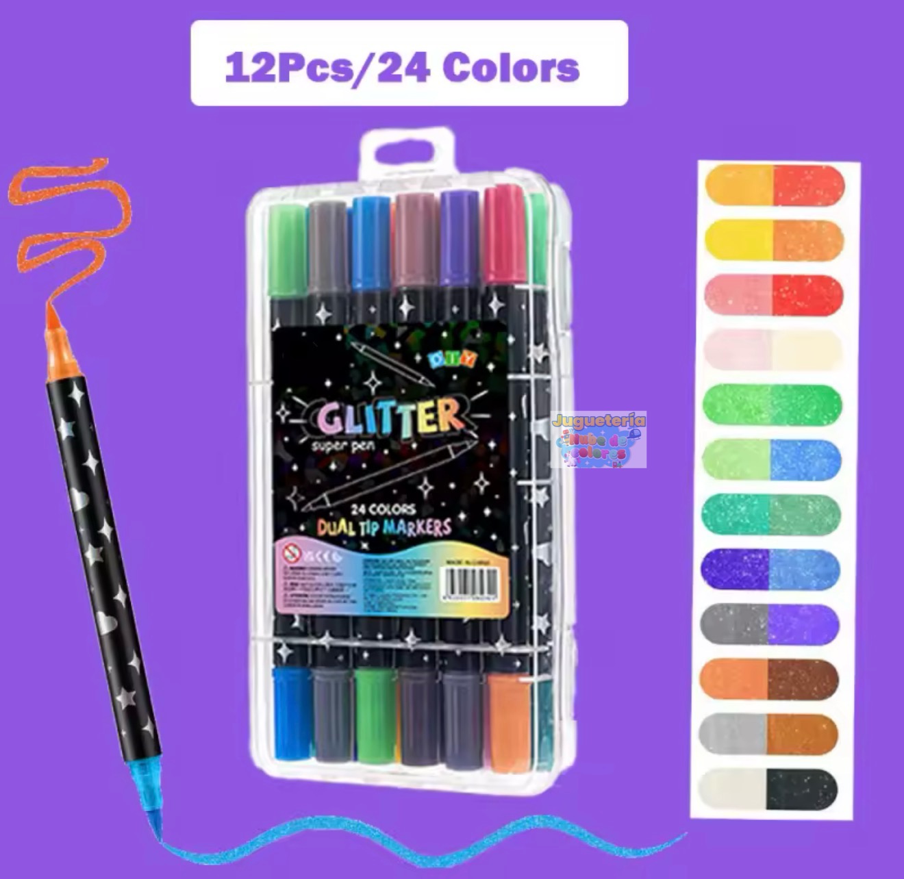 ✨ Marcadores Glitter Doble Punta – 24 Colores