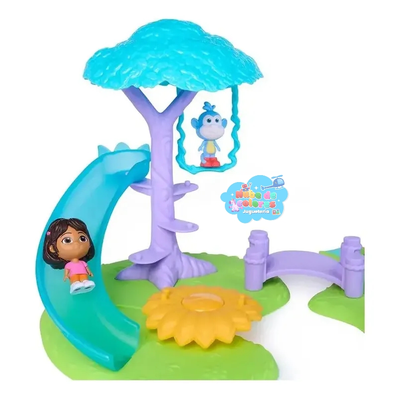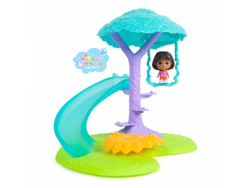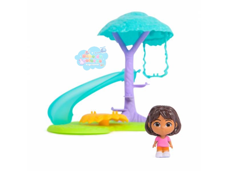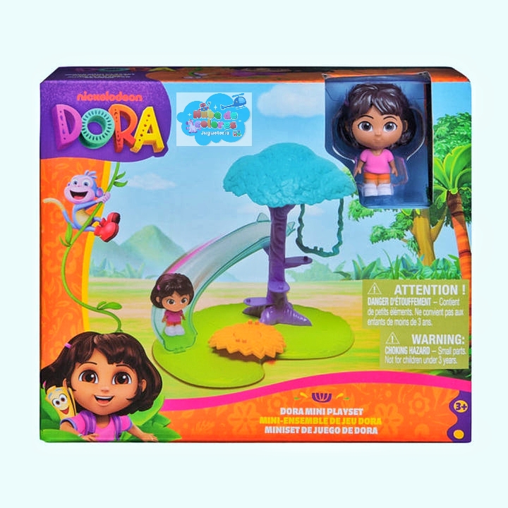 Dora Mini Playset (o Mini Set de Juego), un escenario temático inspirado en la serie animada de Dora la Exploradora. Está diseñado para niños a partir de los 3 años de edad.