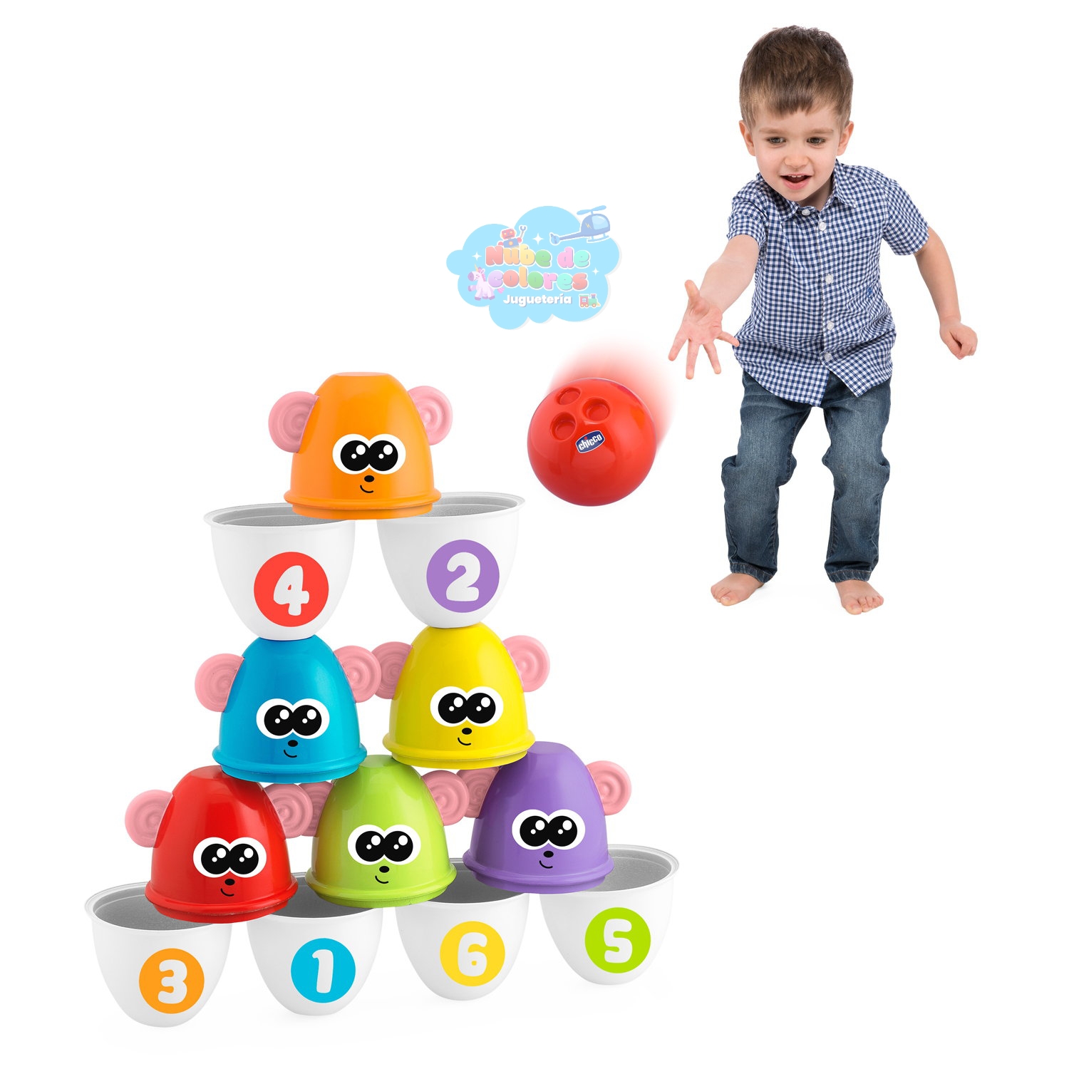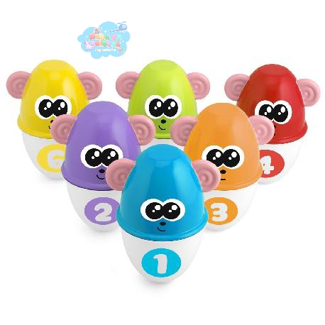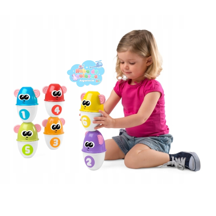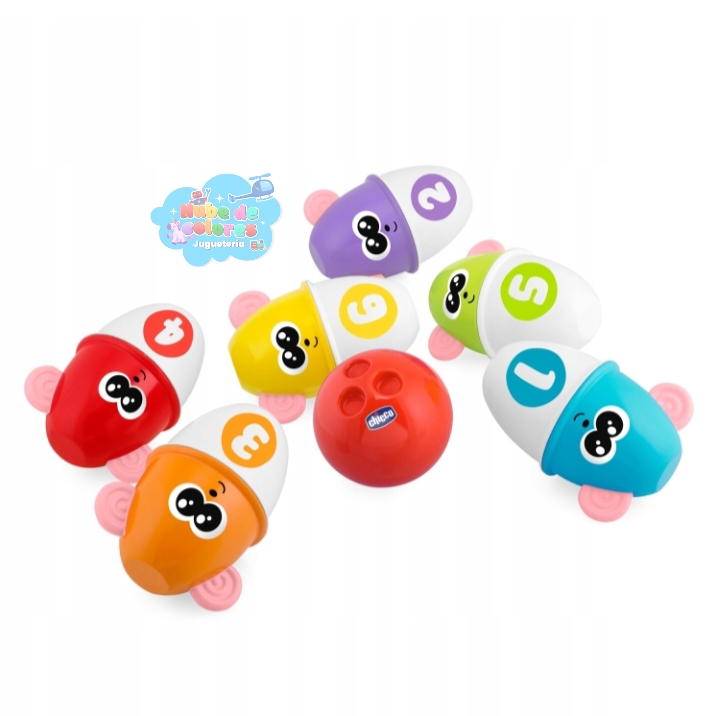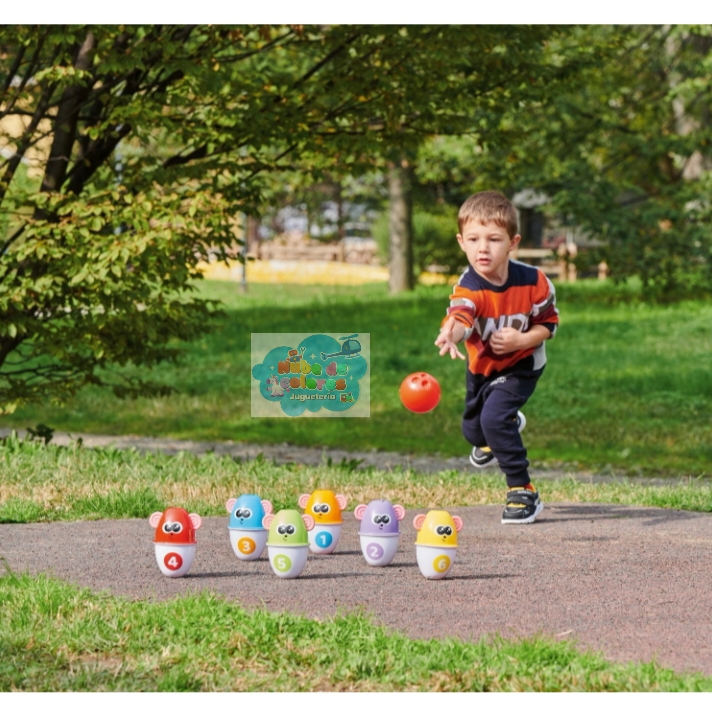 • Aprendizaje Cognitivo: Cada bolo tiene un número (del 1 al 6) y un color diferente, lo que permite a los pequeños empezar a contar y a distinguir colores y formas.