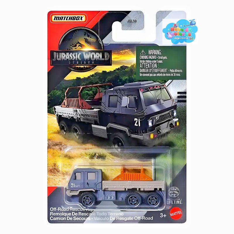 - Modelo: Off-Road Rescue Rig, parte de la colección «Jurassic World Rebirth».