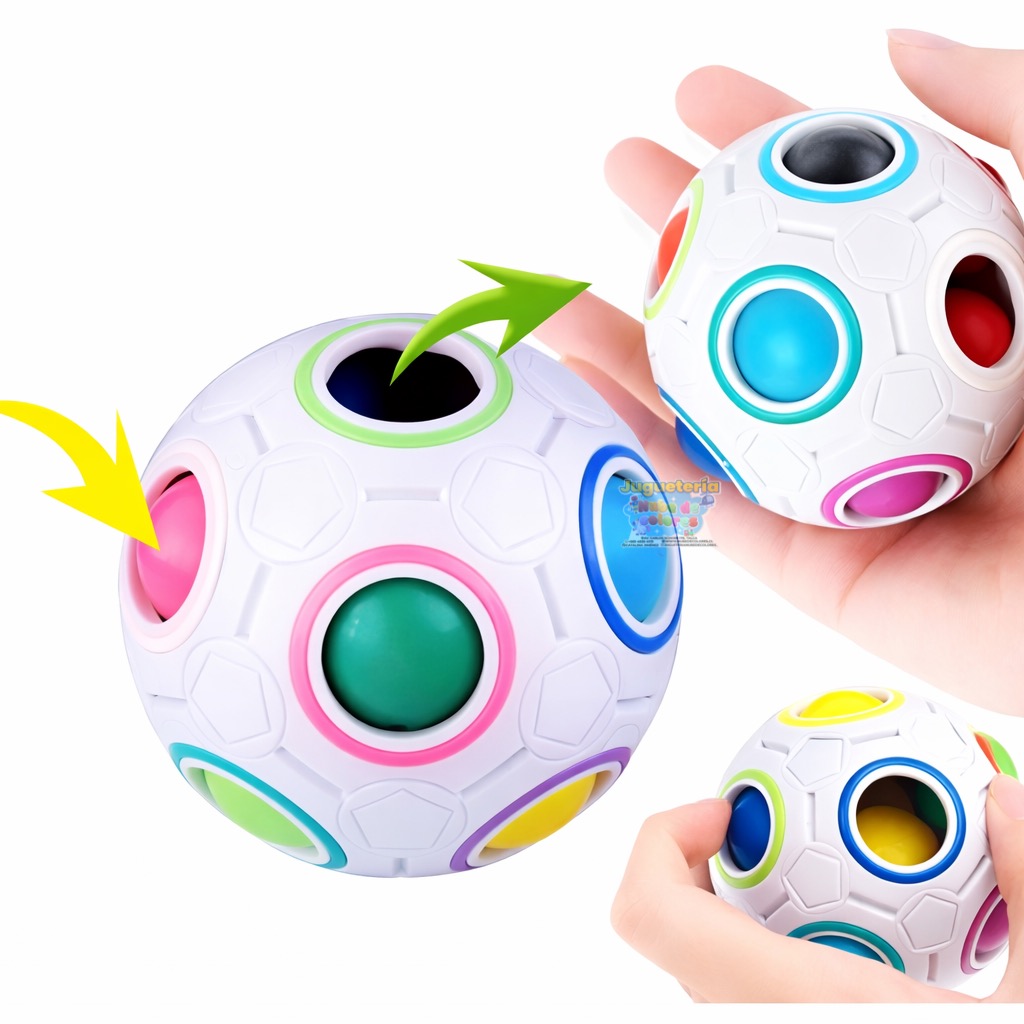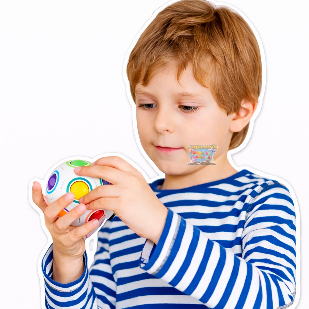 Es una pelota sensorial de encaje, donde los niños deben introducir y presionar piezas de colores en los espacios correctos.