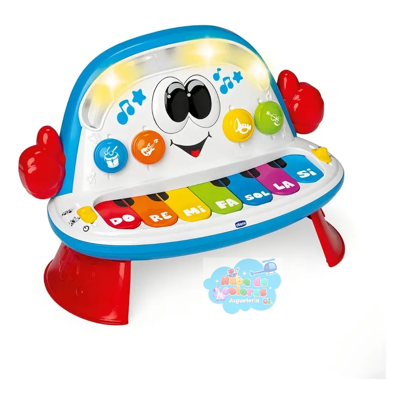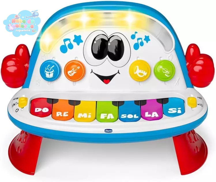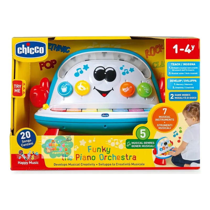 Funky the Piano Orchestra de la marca Chicco, un piano electrónico e interactivo diseñado para niños de 1 a 4 años.