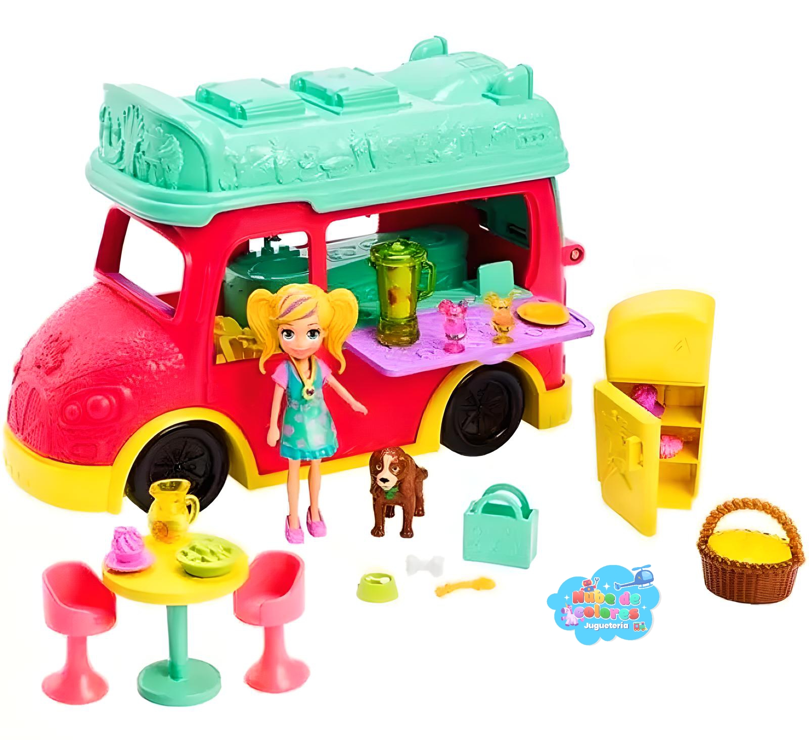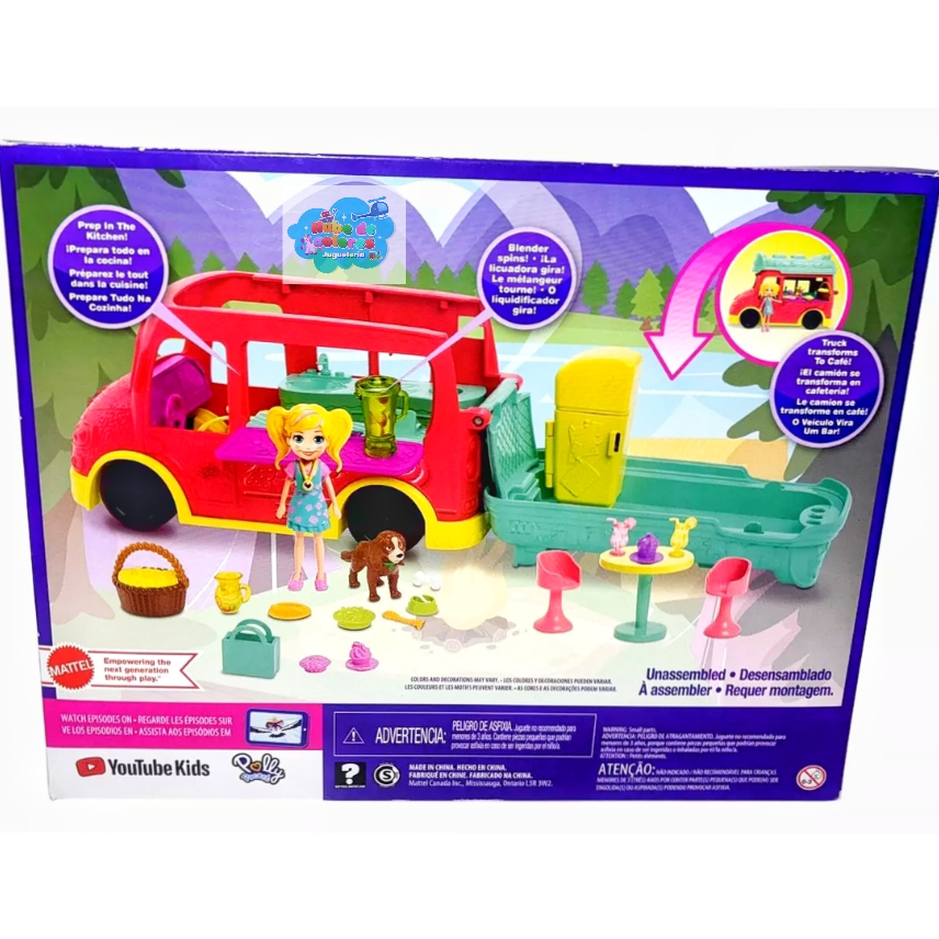 ¡Crea múltiples historias con el camión de comida 2 en 1 Polly Pocket Smoothies de Mattel!