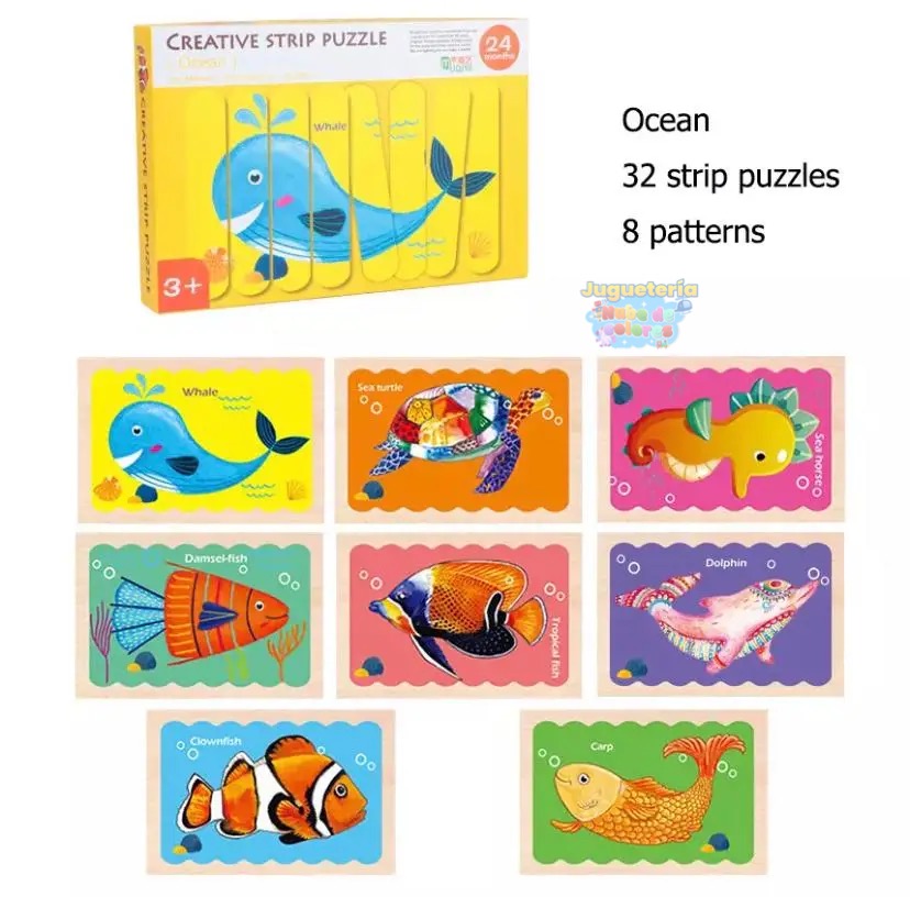 Este puzzle es único y desafiante, con una estructura completamente diferente a la de los puzzles tradicionales. En lugar de piezas separadas que se unen para formar una imagen, este puzzle está compuesto por bandas de piezas conectadas, que deben ser manipuladas y ajustadas para formar la imagen completa. Cada set contiene 8 puzzles diferentes, cada uno con 8 piezas y una base de madera.