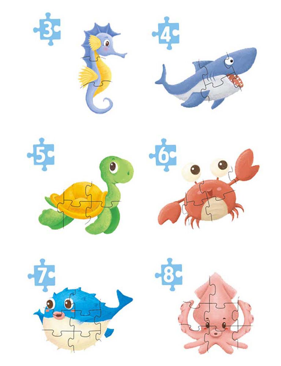 Ideal para niños desde los 2, puzzle hermosamente ilustrado con mundo marino estilo collage. – Ayuda a desarrollar las habilidades motoras finas de los niños – Uso pre-escolar – Potencia el desarrollo de su imaginación. Lo divertido del puzzle que vas avanzando por niveles aumentando la complejidad.
