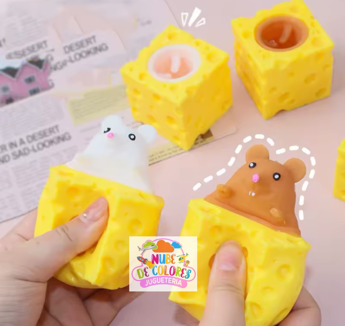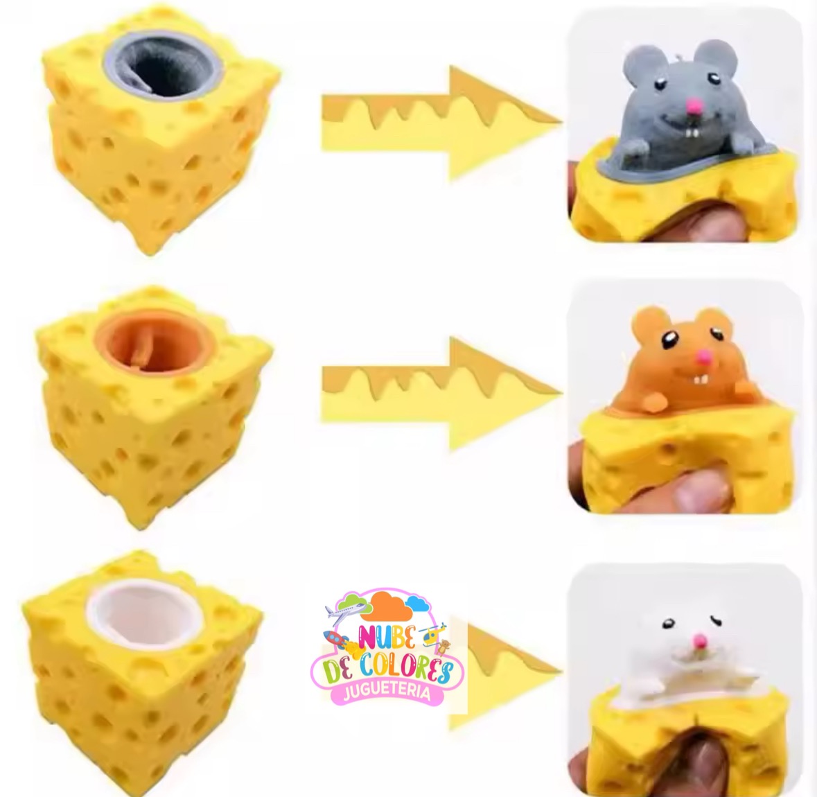Apreta y sopresa, tres colores diferentes, material ultra resistente y una textura muy realista.