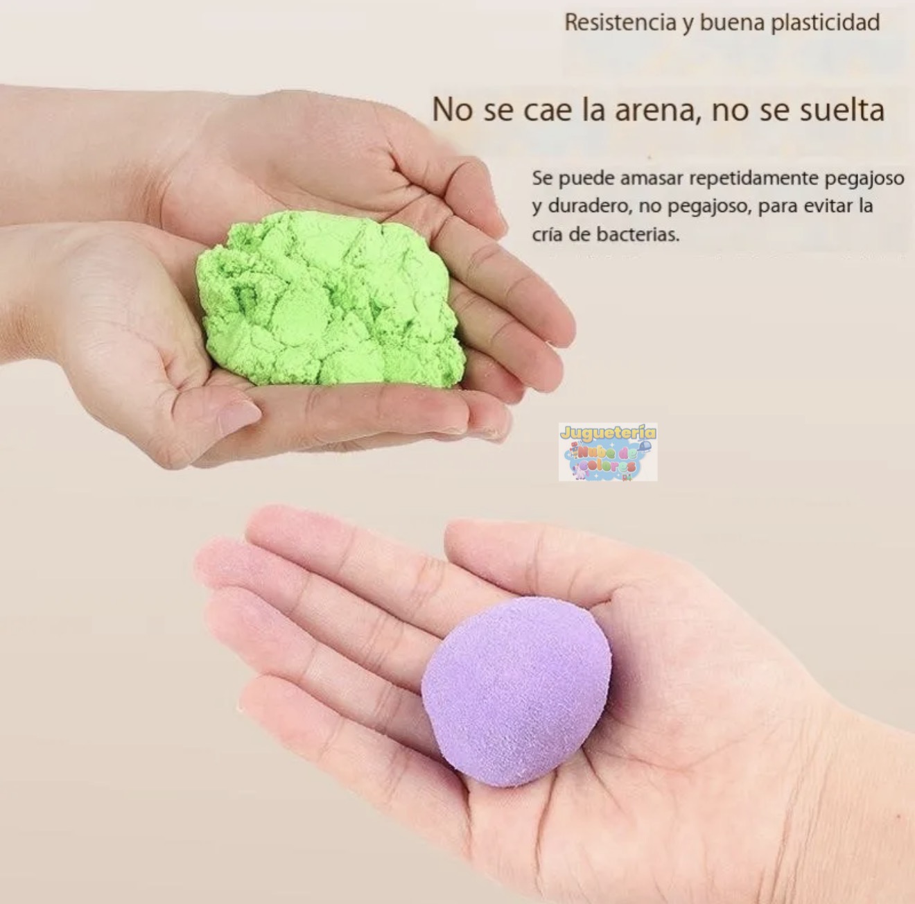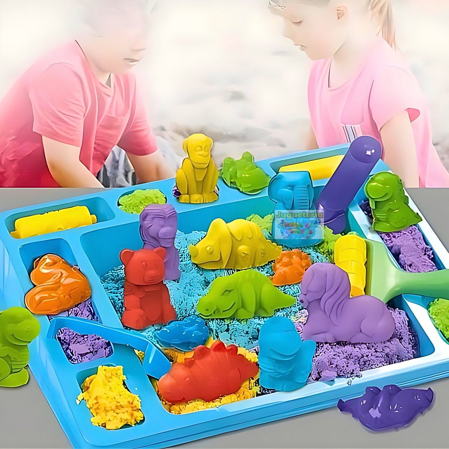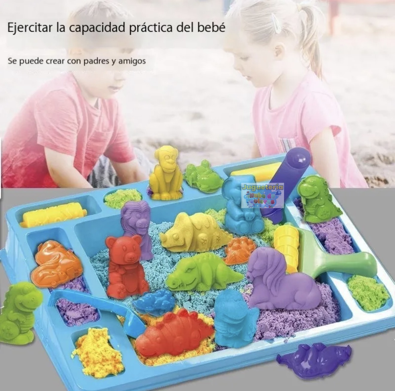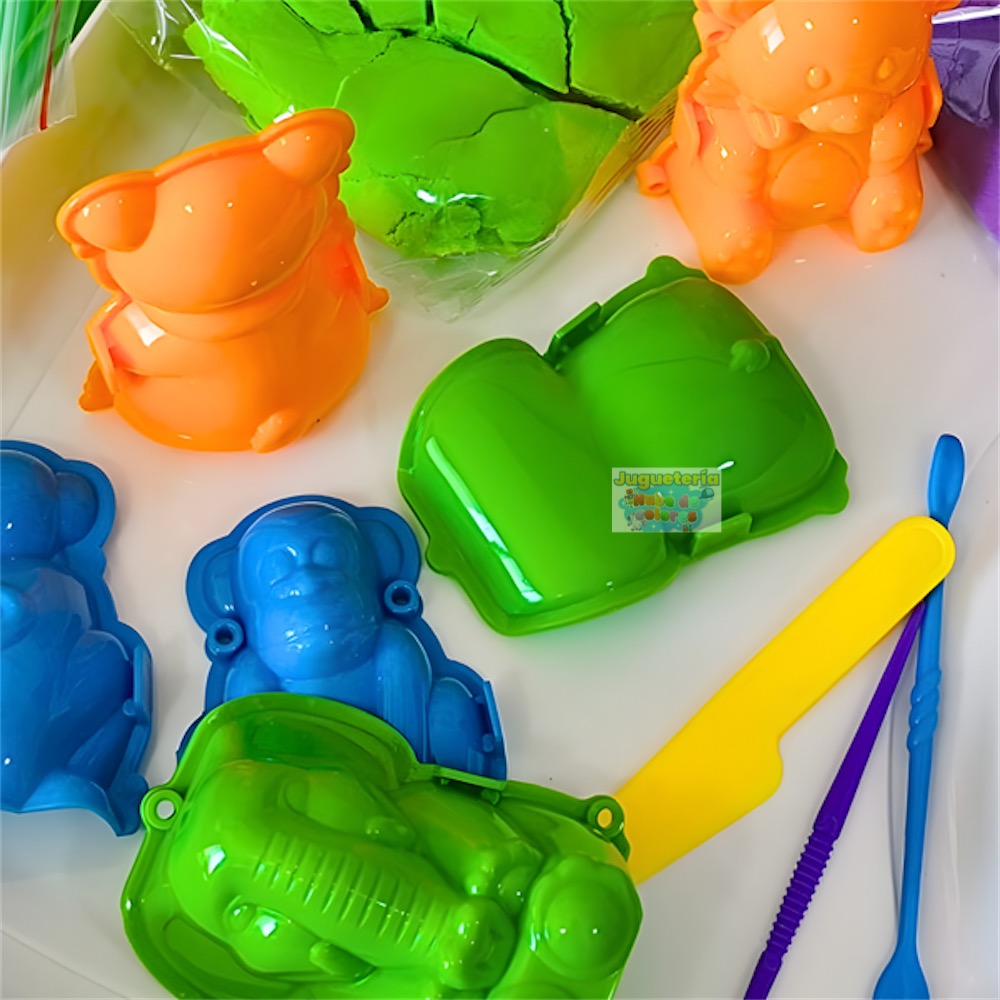 La arena dinámica permite crear figuras, moldear animales y dejar volar la imaginación sin ensuciar como la arena tradicional.
