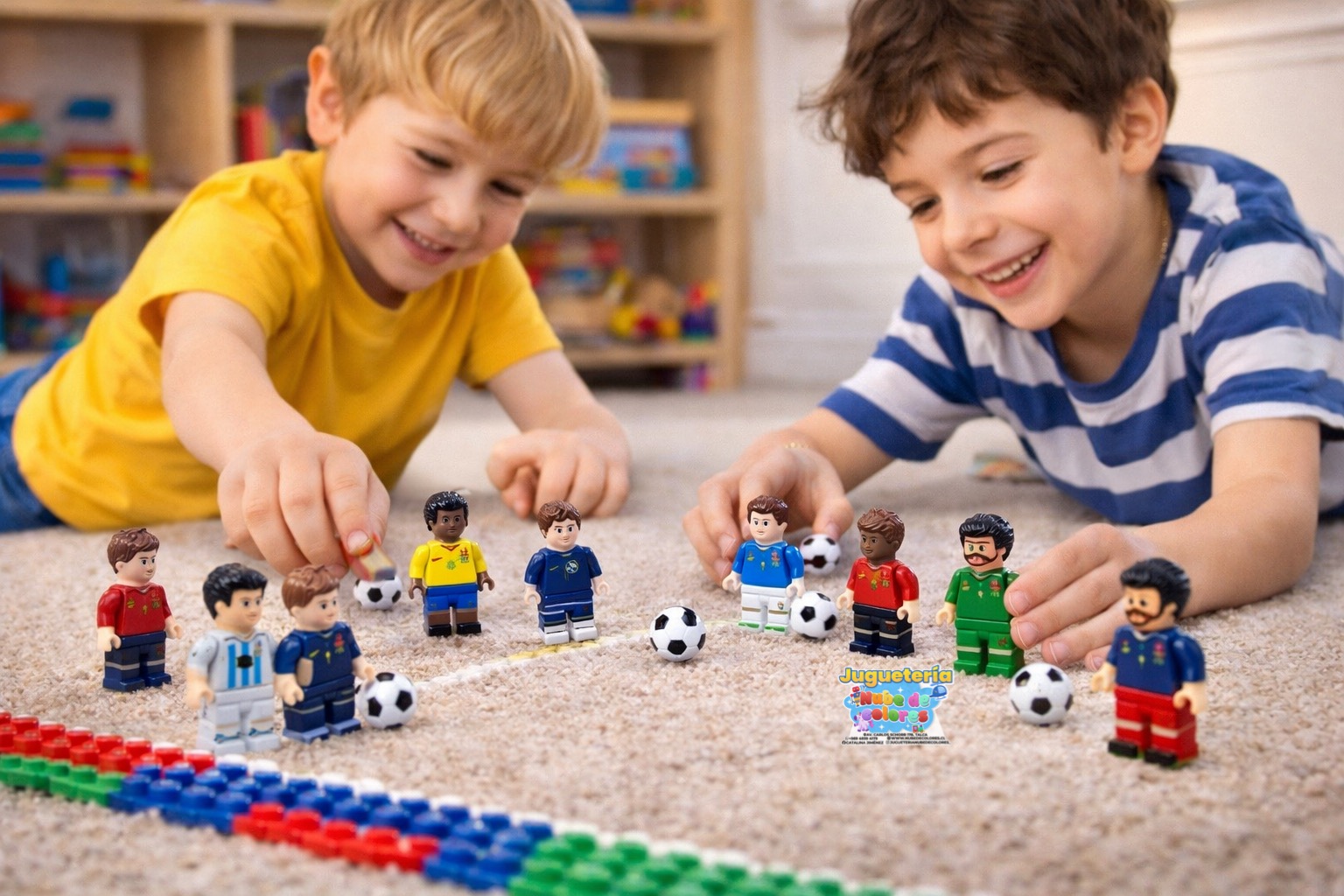 Set de mini figuras tipo bloques inspiradas en jugadores de fútbol, perfectas para recrear partidos, entrenamientos y goles inolvidables.