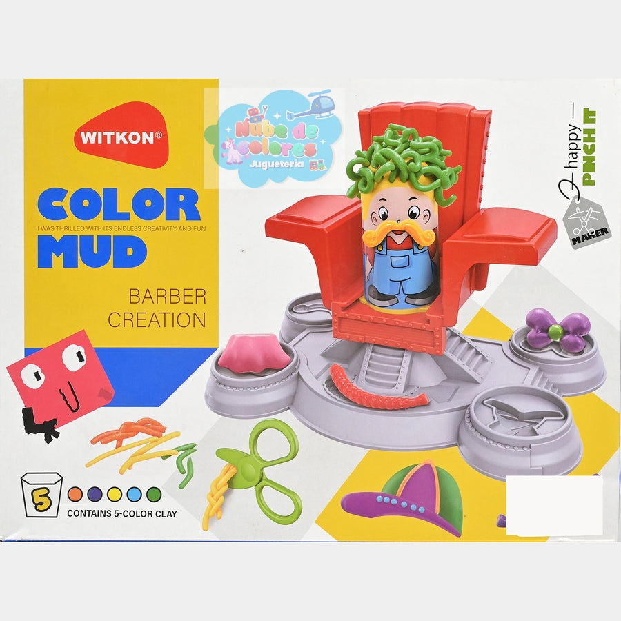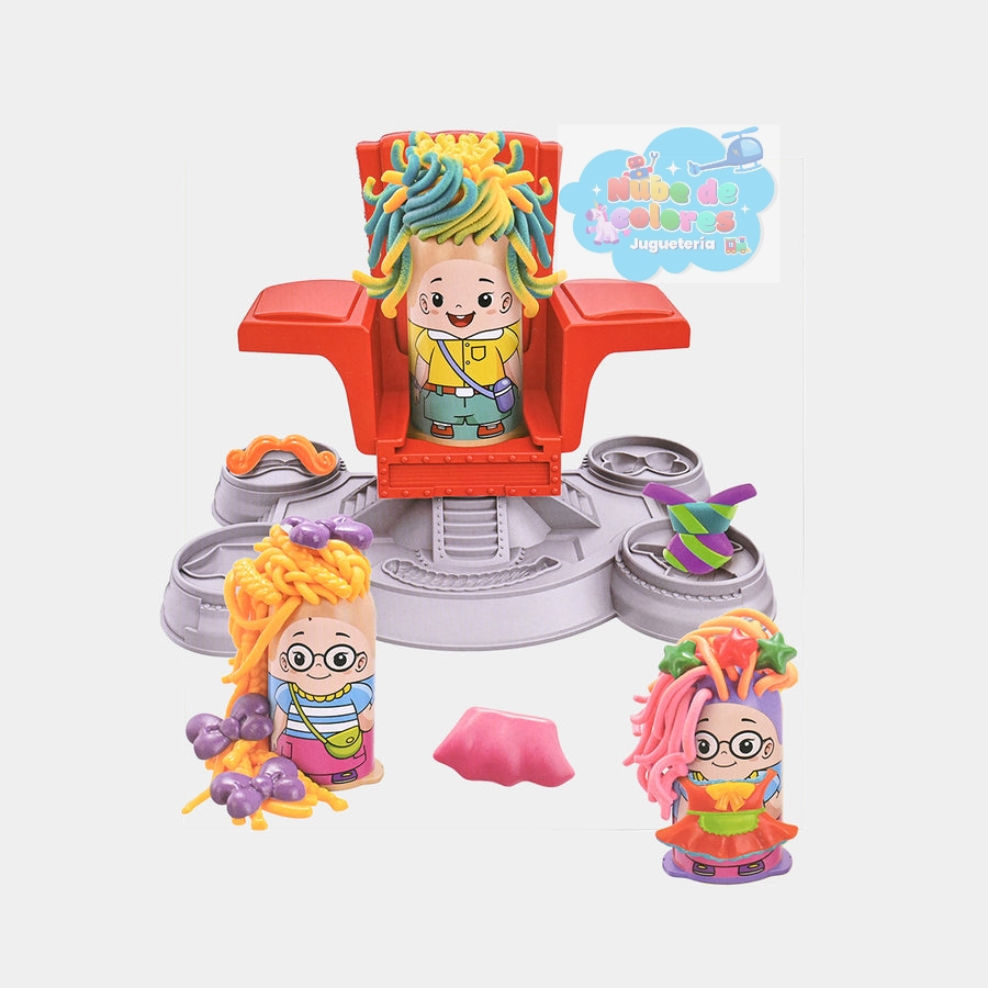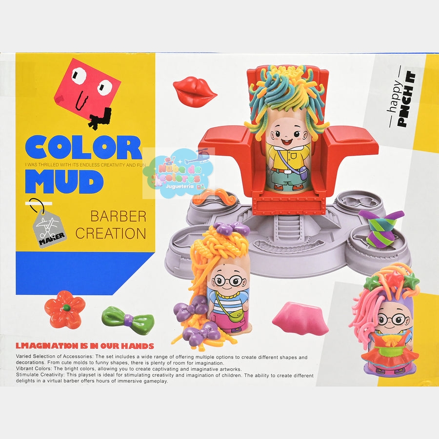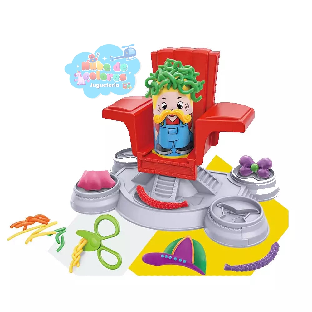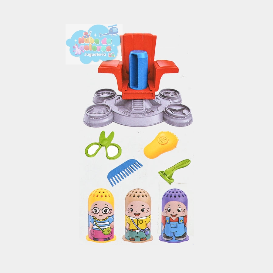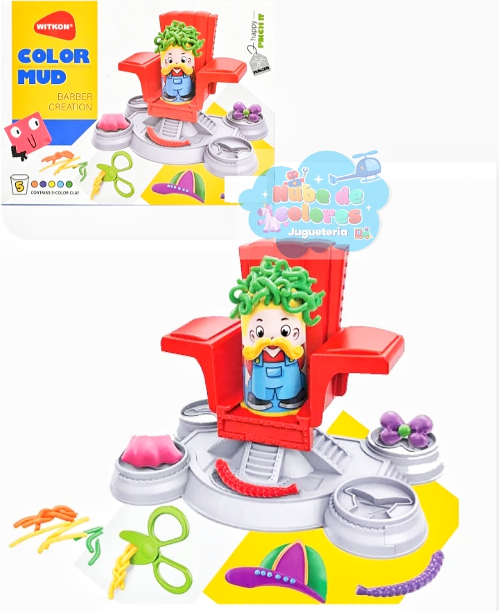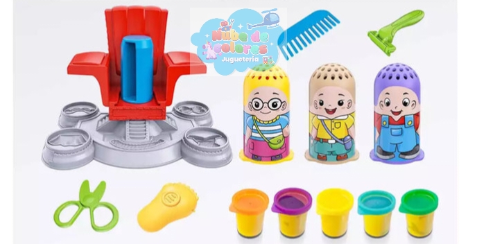 - ¿Qué es? Es un juguete creativo diseñado para niños a partir de 3 años, que incluye arcilla de moldeo de 5 colores y varias herramientas de plástico como tijeras, moldes y una silla de barbero de juguete.