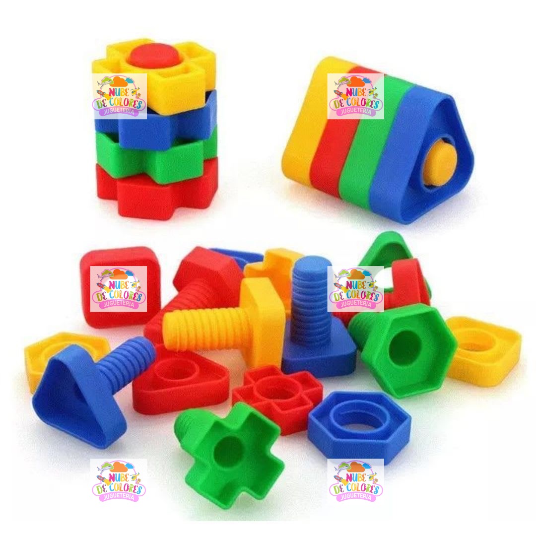 Descubre el mundo del aprendizaje a través del juego con nuestro Set de Tornillos y Tuercas de Colores, el complemento perfecto para cualquier espacio de juego educativo. Este conjunto de 52 piezas, diseñado para manos pequeñas, no solo es divertido sino también educativo, proporcionando una base sólida para el desarrollo de habilidades motrices finas, la identificación de colores y formas, y el fomento del pensamiento lógico.