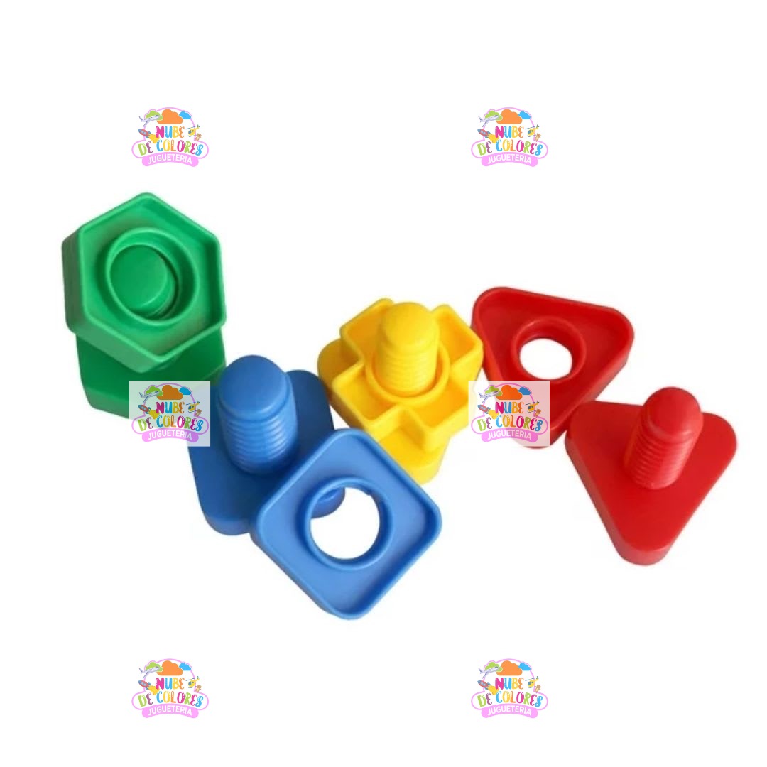 • Aprendizaje de Colores y Patrones: Con tornillos y tuercas en rojo, amarillo, azul y verde, los niños pueden jugar a emparejar, clasificar y crear patrones, introduciéndolos en conceptos básicos de secuenciación y reproducción de patrones, fundamentales para el desarrollo cognitivo.