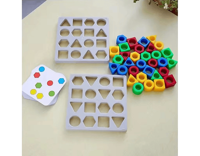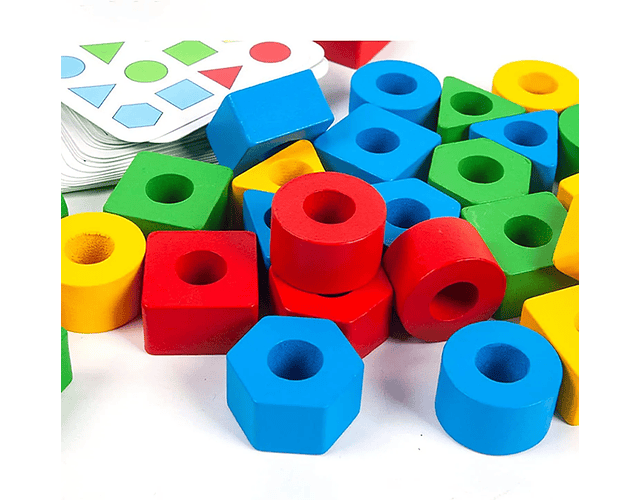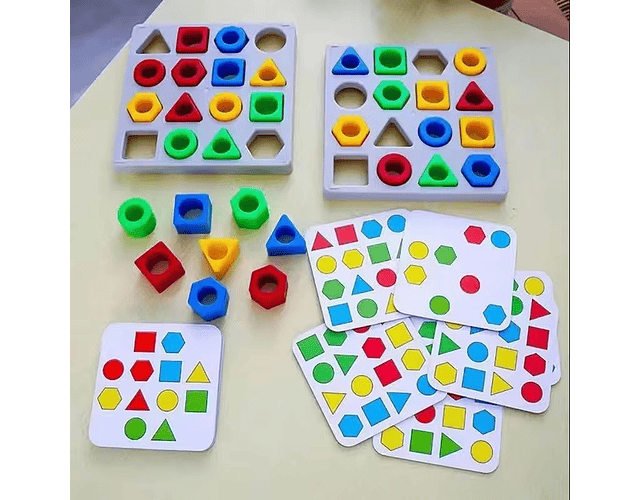 Bloques de apilamiento geométricos: el juego de combinar formas contiene formas y cartas de desafío y colores brillantes, las habilidades s de apilar estos bloques geométricos, aprender formas y colores.