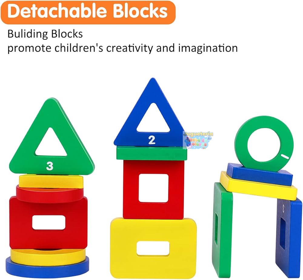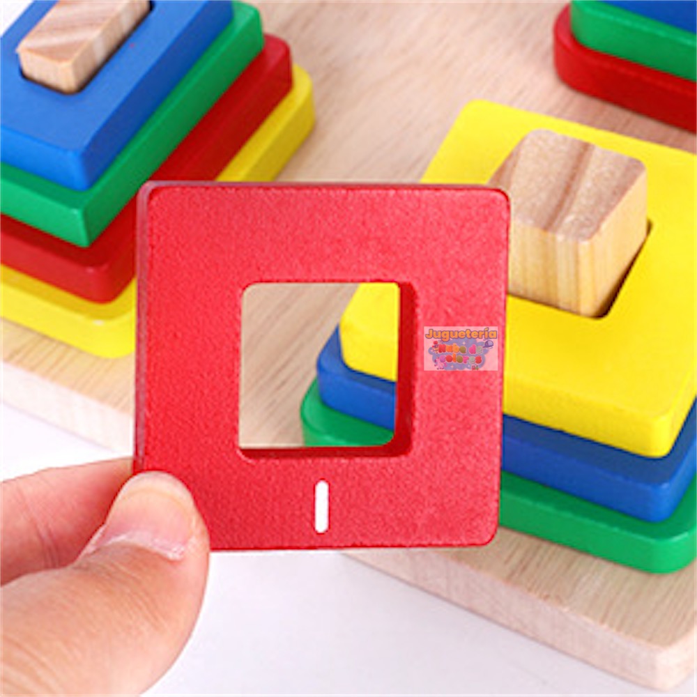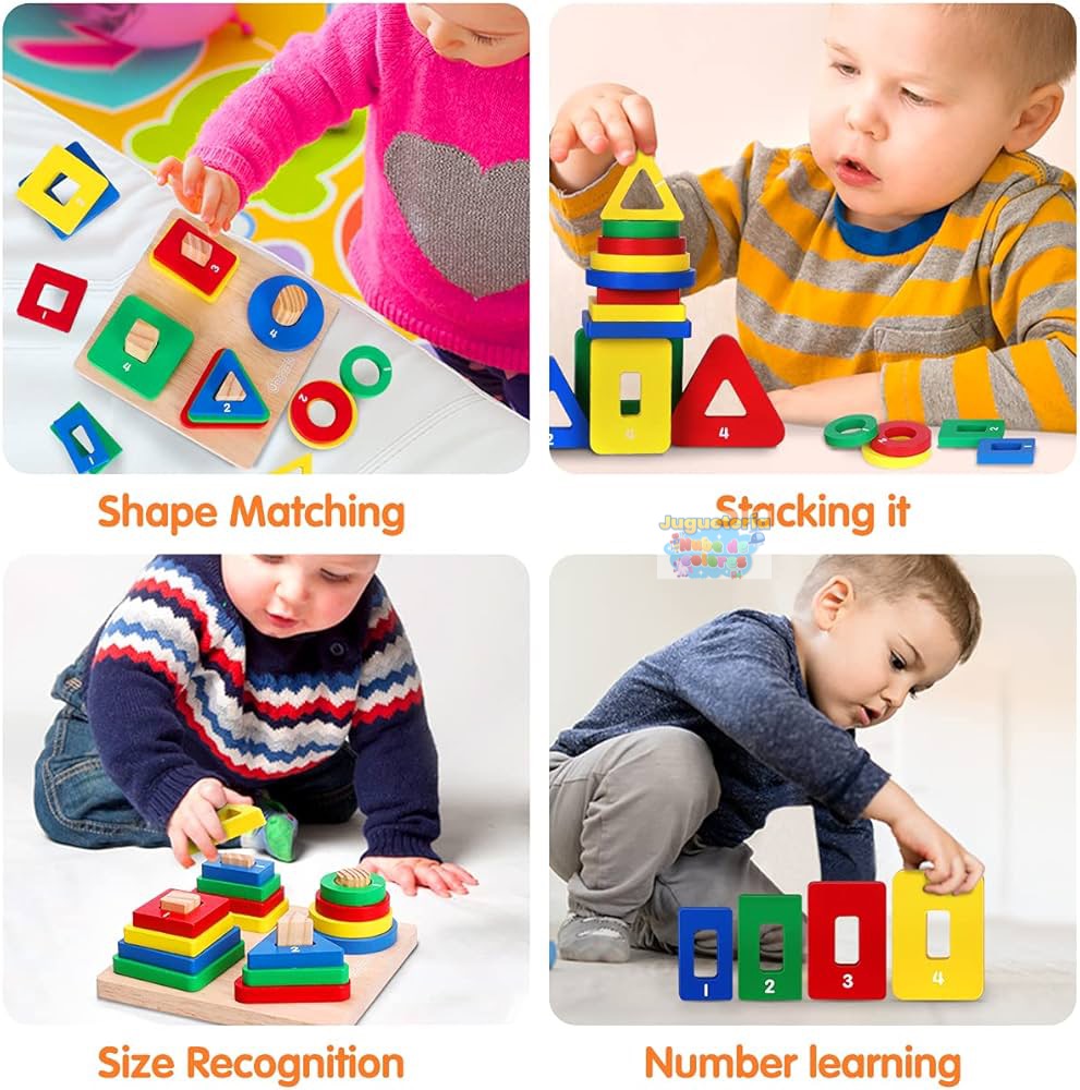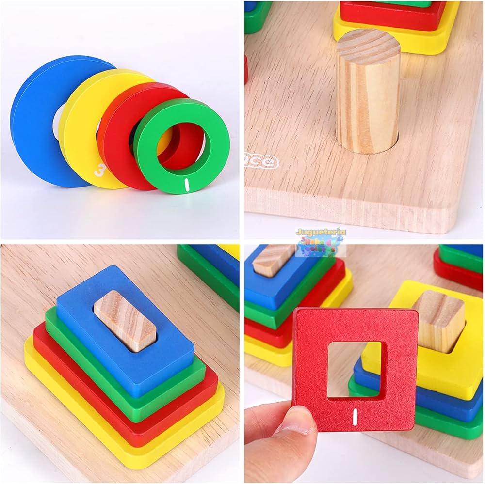 ✔ Coordinación óculo–manual: requiere precisión al insertar cada forma en el poste correcto.