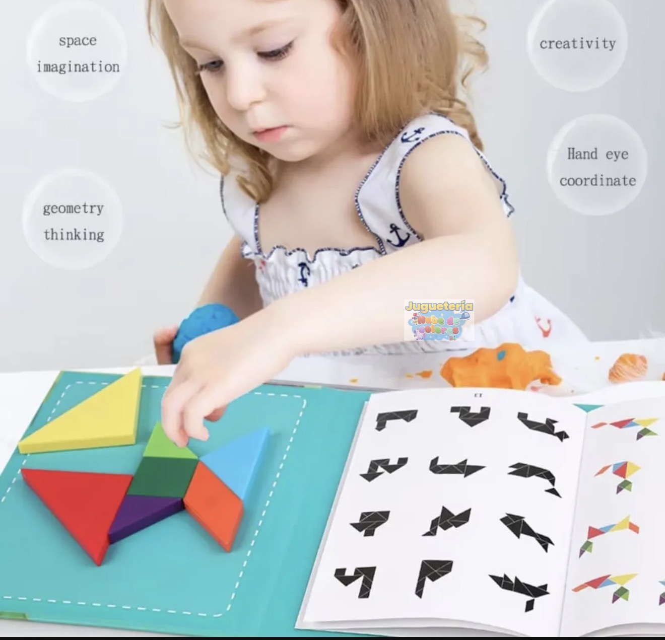 Este tangram magnético permite crear figuras, animales y formas mientras fortalece habilidades cognitivas clave.