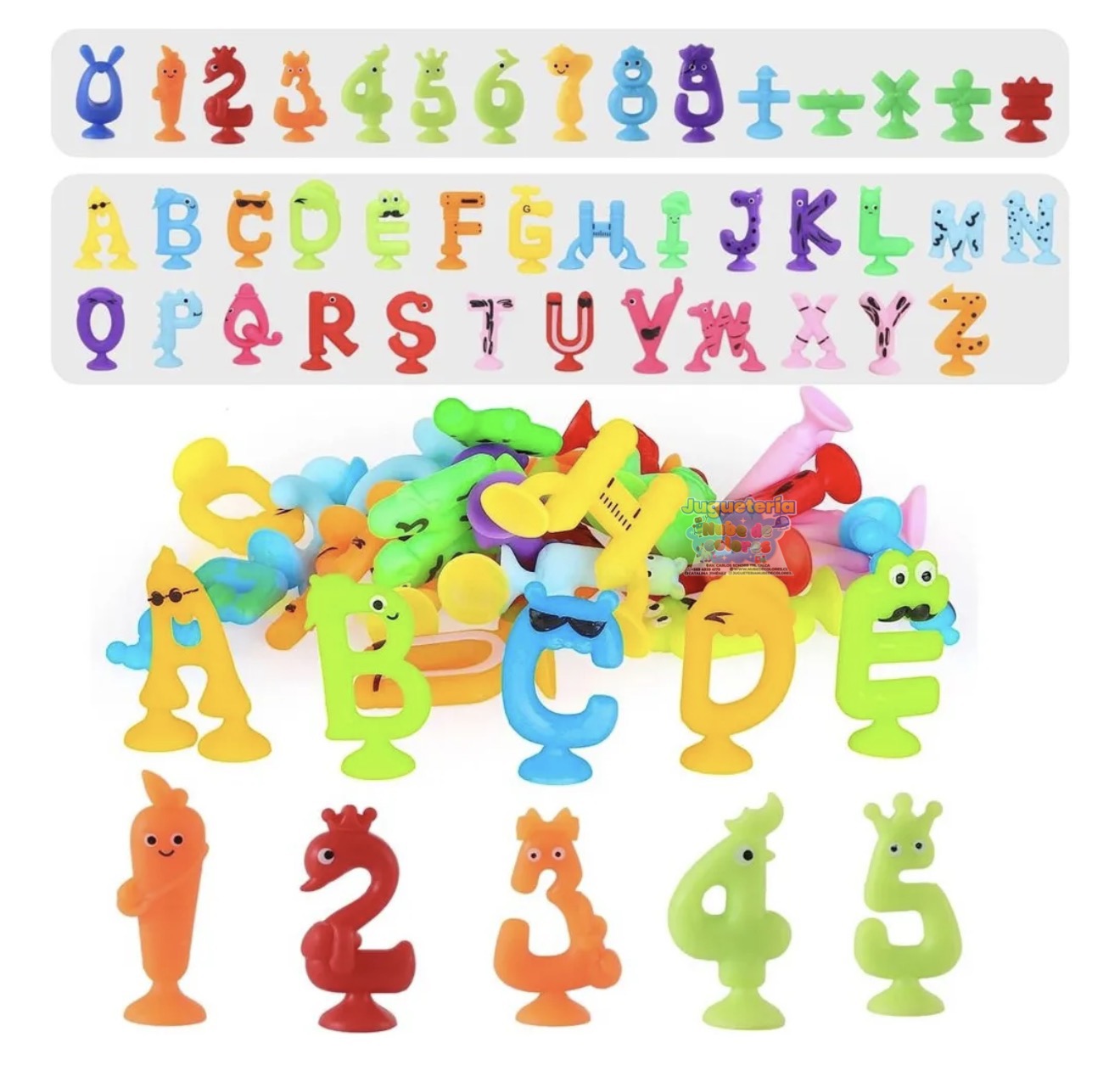 Aprender letras y números nunca fue tan divertido con estas increíbles ventosas que se adhieren súper fácil en superficies lisas, lo cual lo hace más entretenido a la hora de aprender.